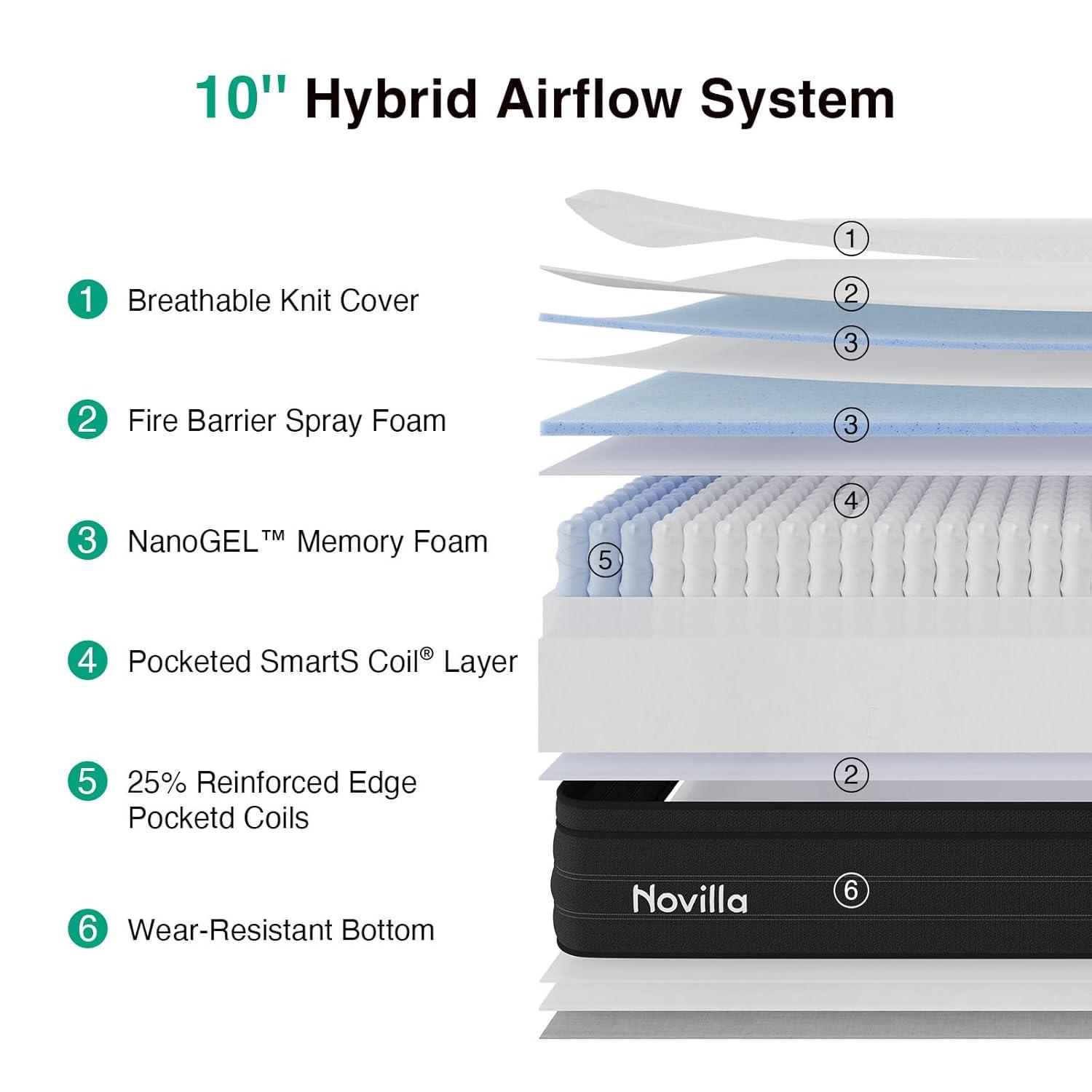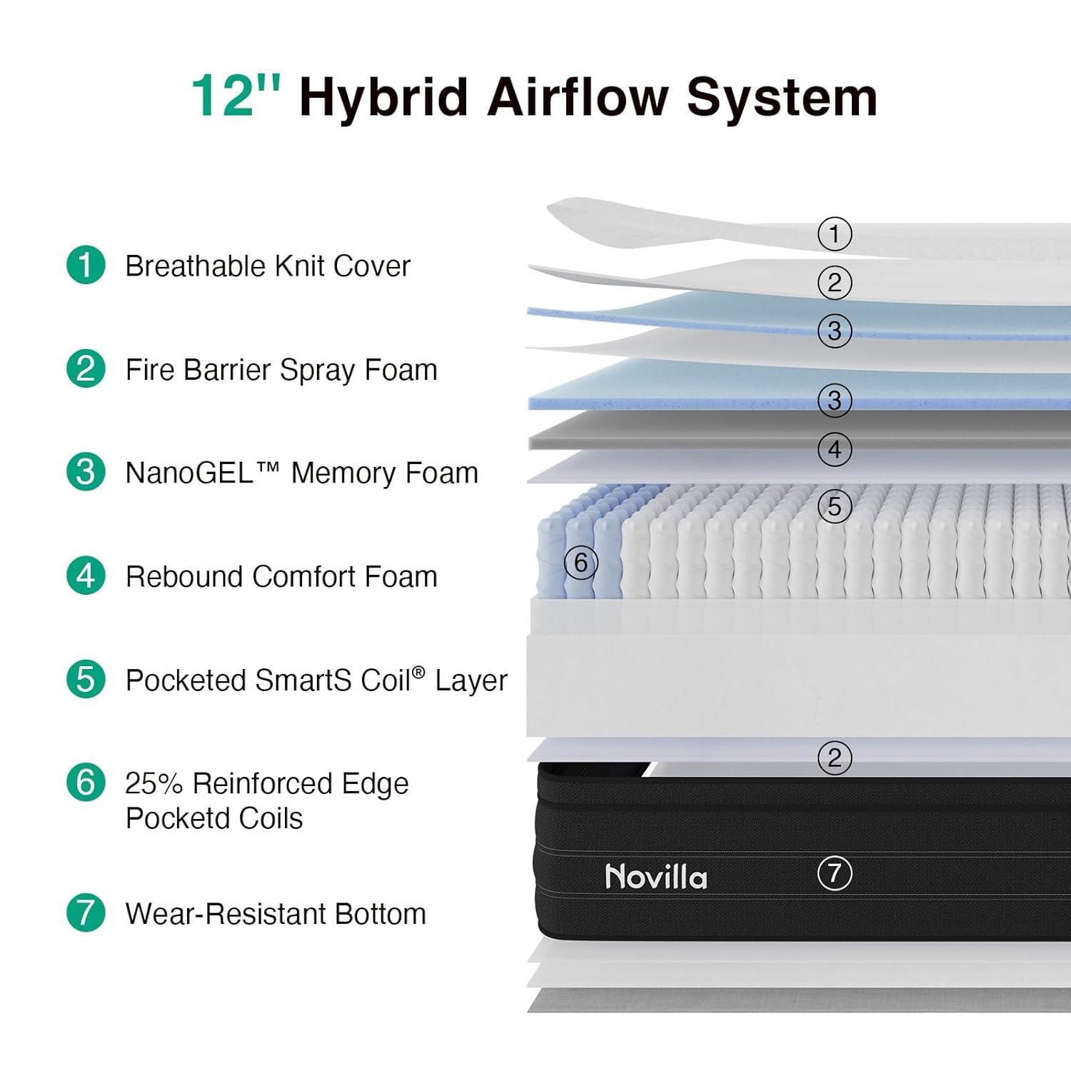 Novilla 12 Inch Queen Mattress, Cooling Queen Hybrid Mattress with Upgraded Individual Coils & Gel Memory Foam, Enhanced Support, Reinforced Edge, Motion Isolation, Pressure Relief, CertiPUR-US(King (U.S. Standard))