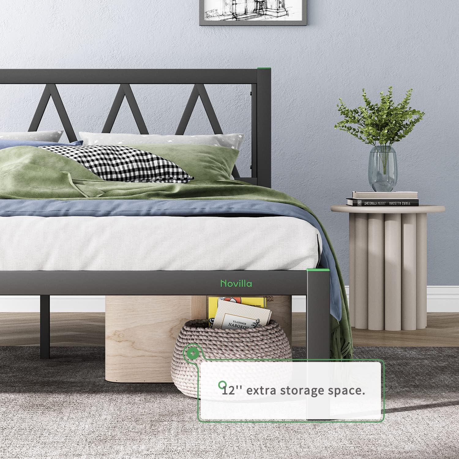 Bed Frame with Storage Space – Novilla 14 inch high twin platform bed frame with 12-inch under bed clearance can be considered as an alternative storage zone. It can store your suitcases, boxes, child toys, and other items, which can keep your bedroom tidier and save your space.