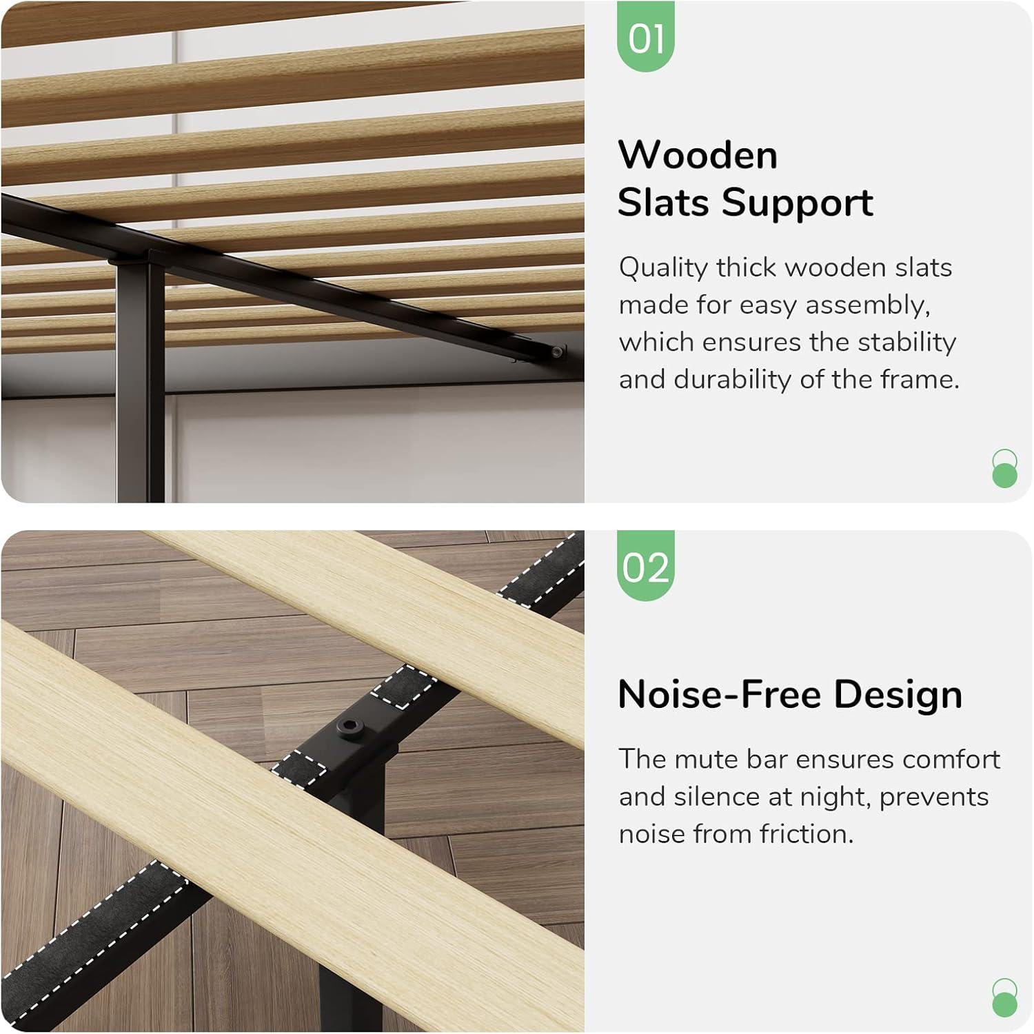 Novilla 14 Inch Metal Platform Bed Frame with Headboard & Wooden Slat Support