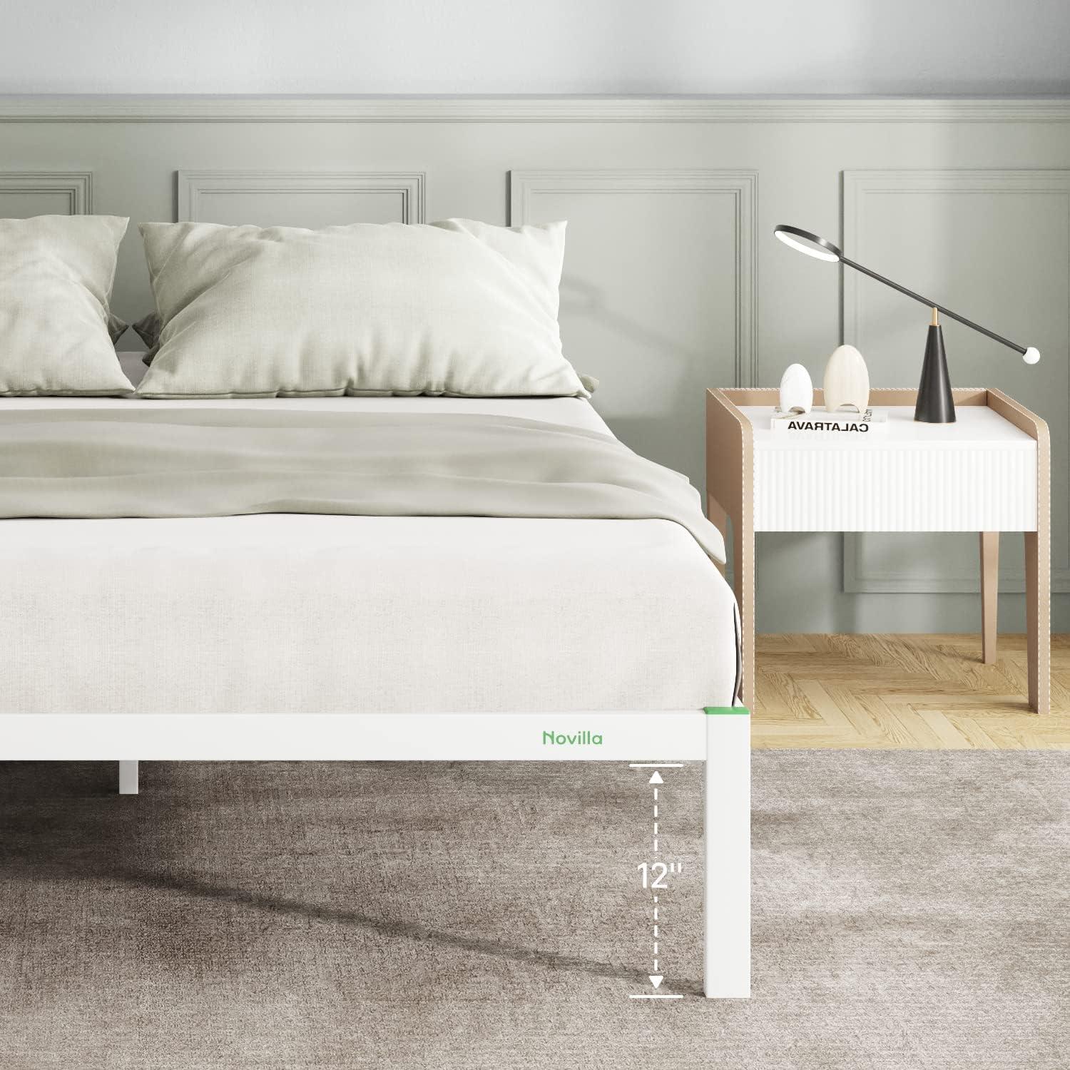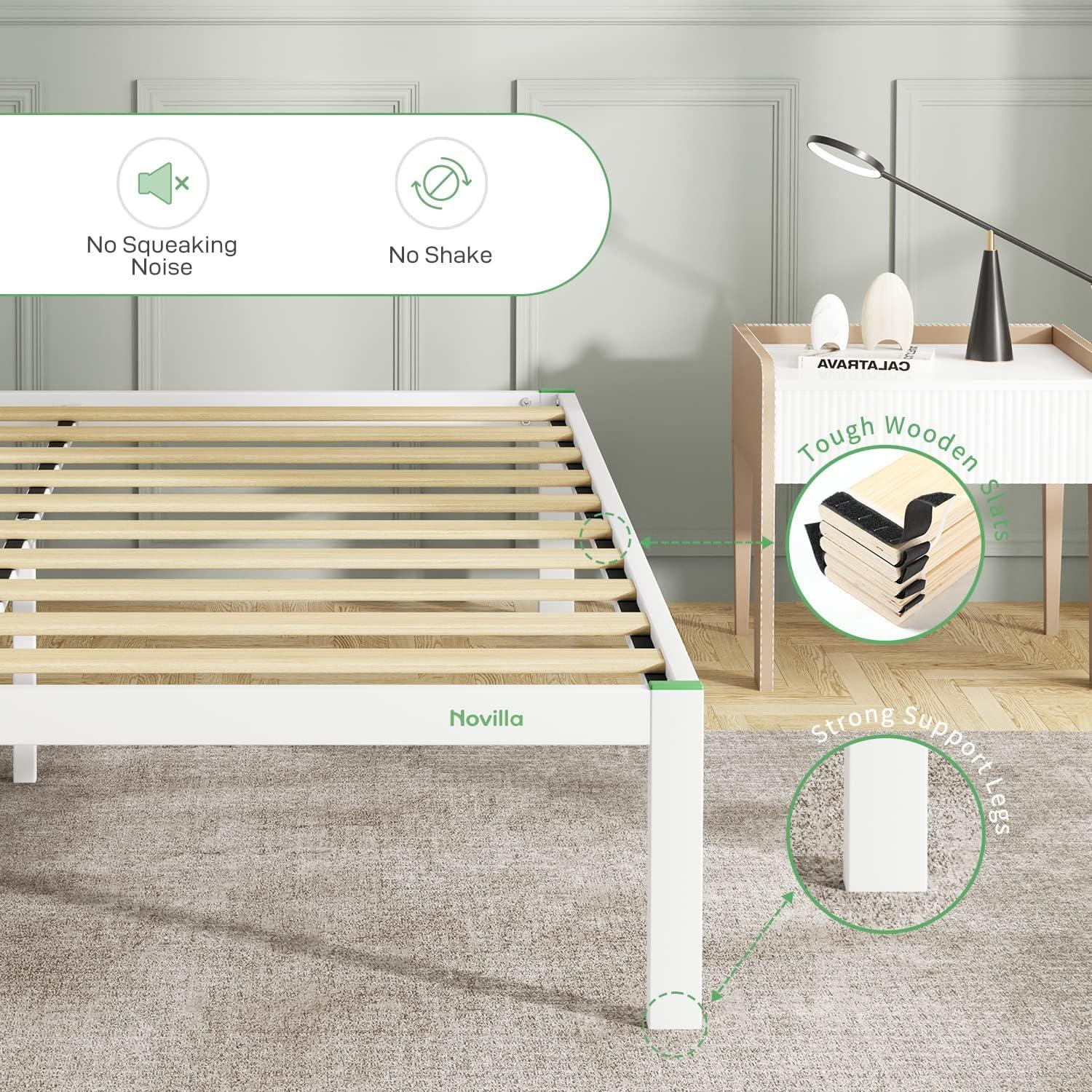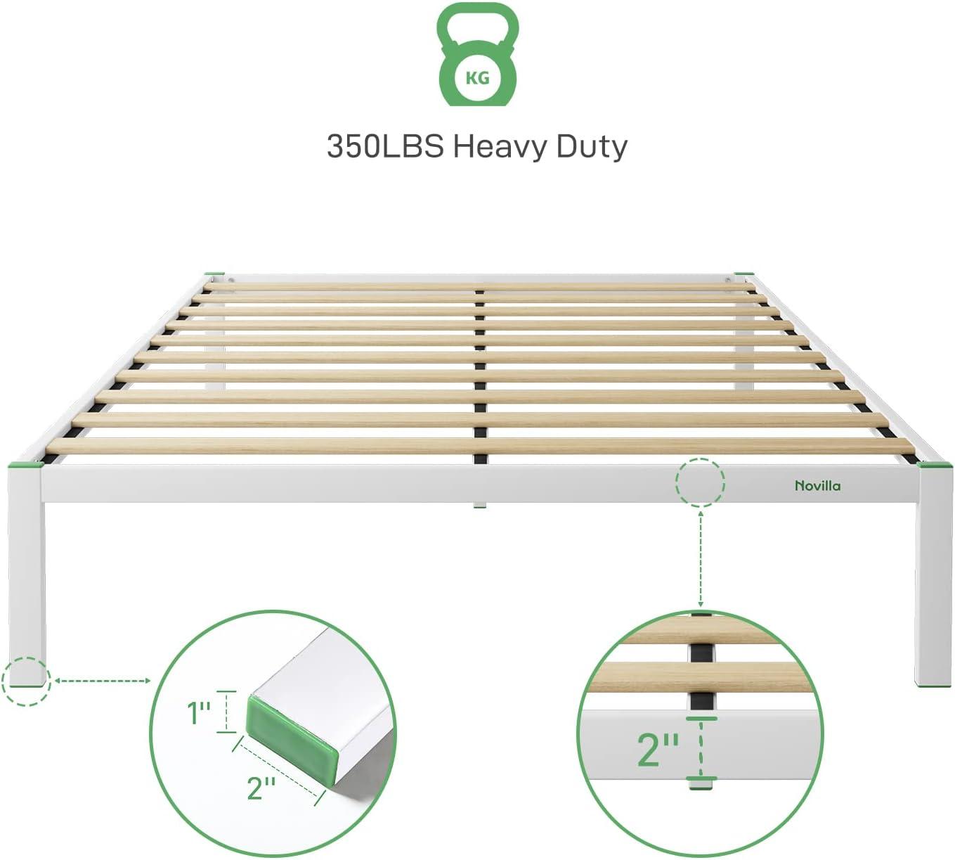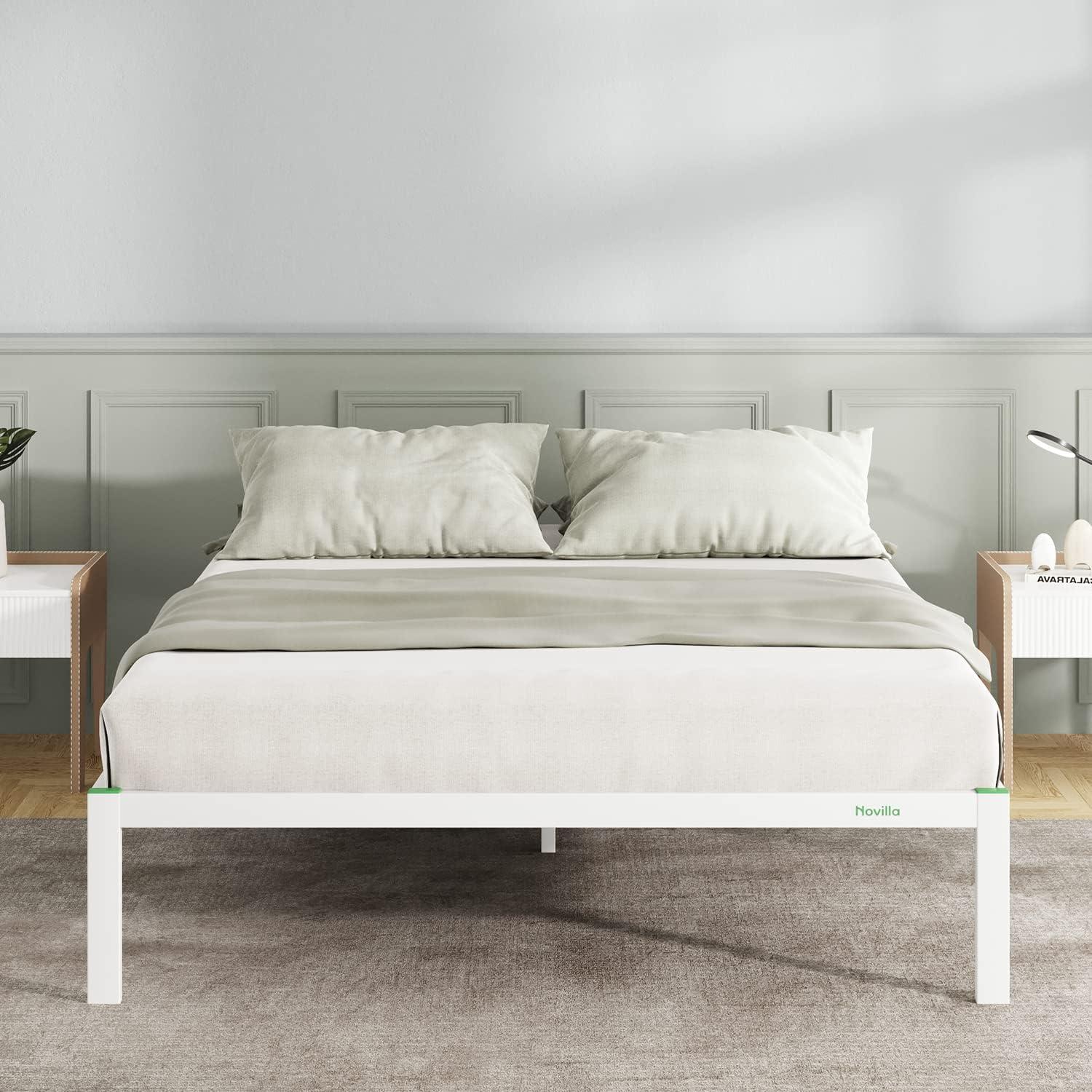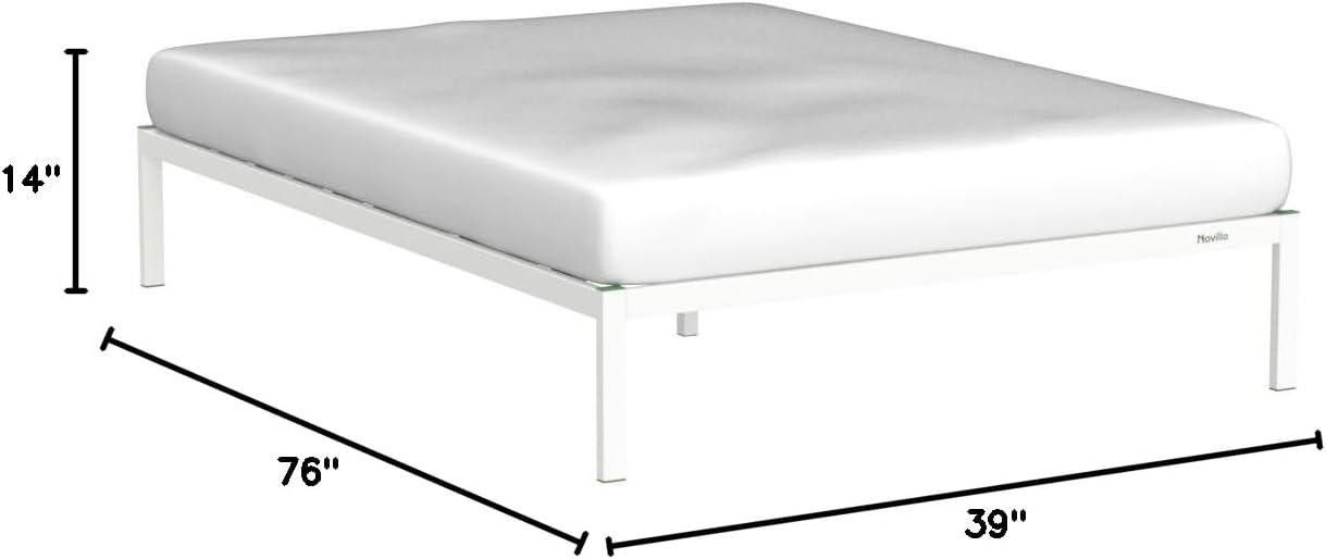 Bed Frame with Storage Space – Novilla 14 inch high twin platform bed frame with 12-inch under bed clearance can be considered as an alternative storage zone. It can store your suitcases, boxes, child toys, and other items, which can keep your bedroom tidier and save your space.