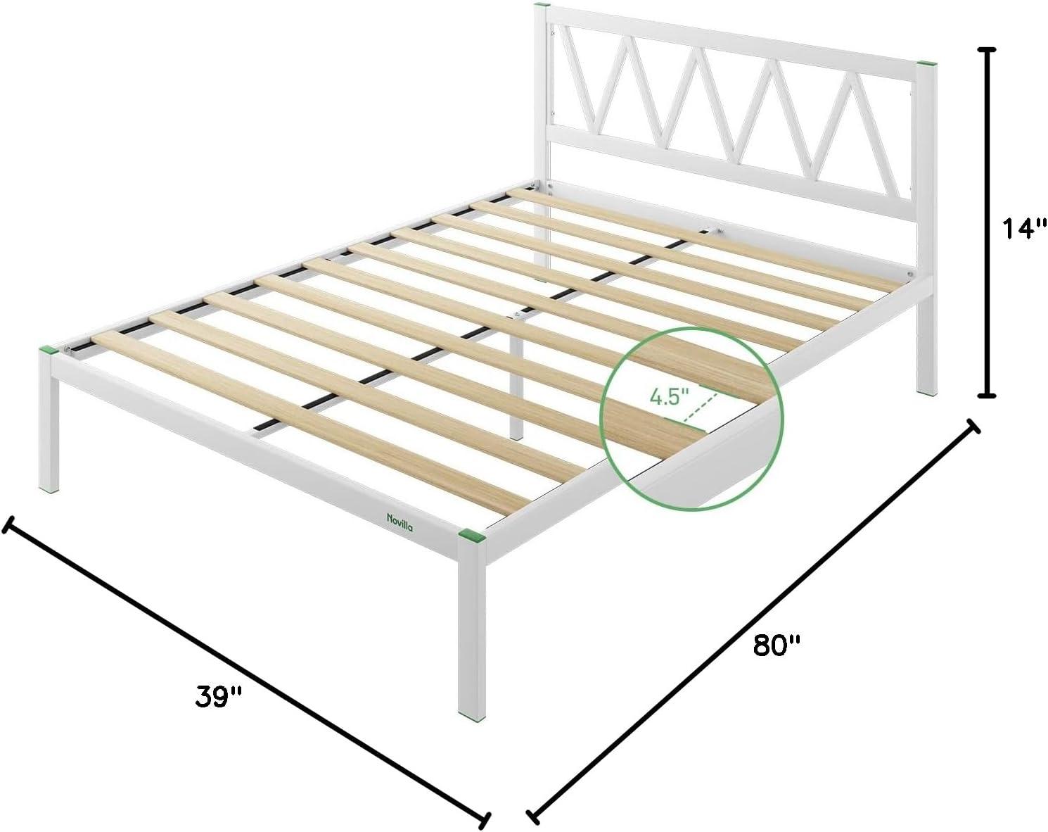 Novilla 14 Inch Metal Platform Bed Frame with Headboard & Wooden Slat Support