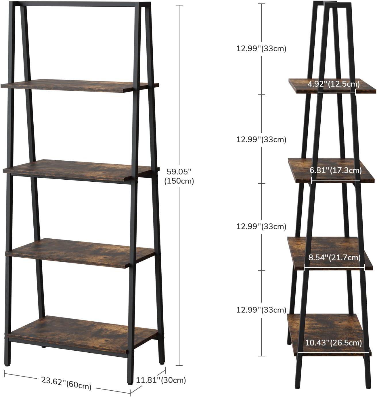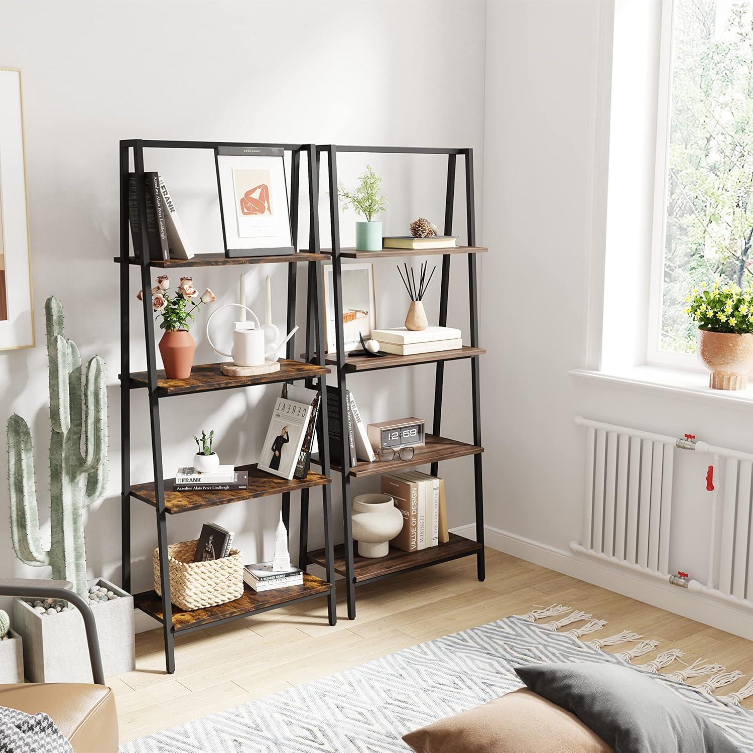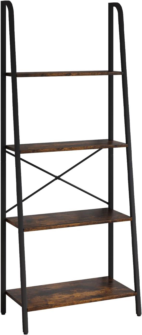 Novilla Bookshelf, 4-Tier Bookcase, Freestanding Storage Ladder Shelves for Home/Office/Living Room/Balcony/Bedroom, Brown(Brown)