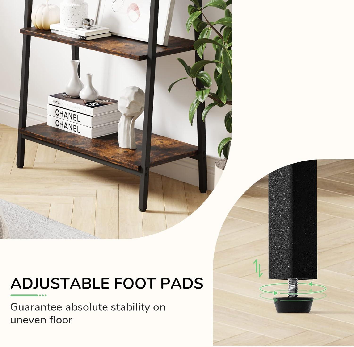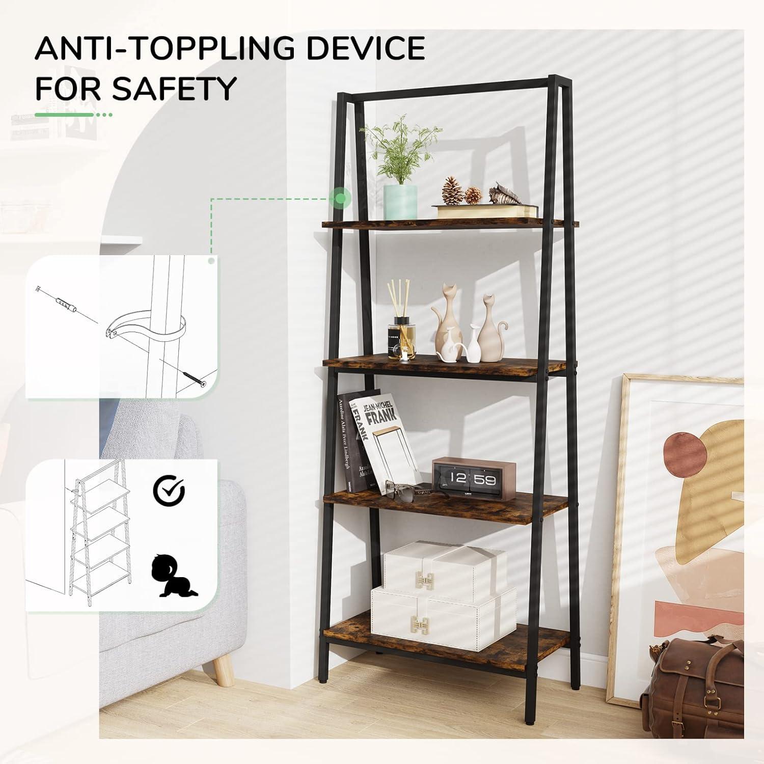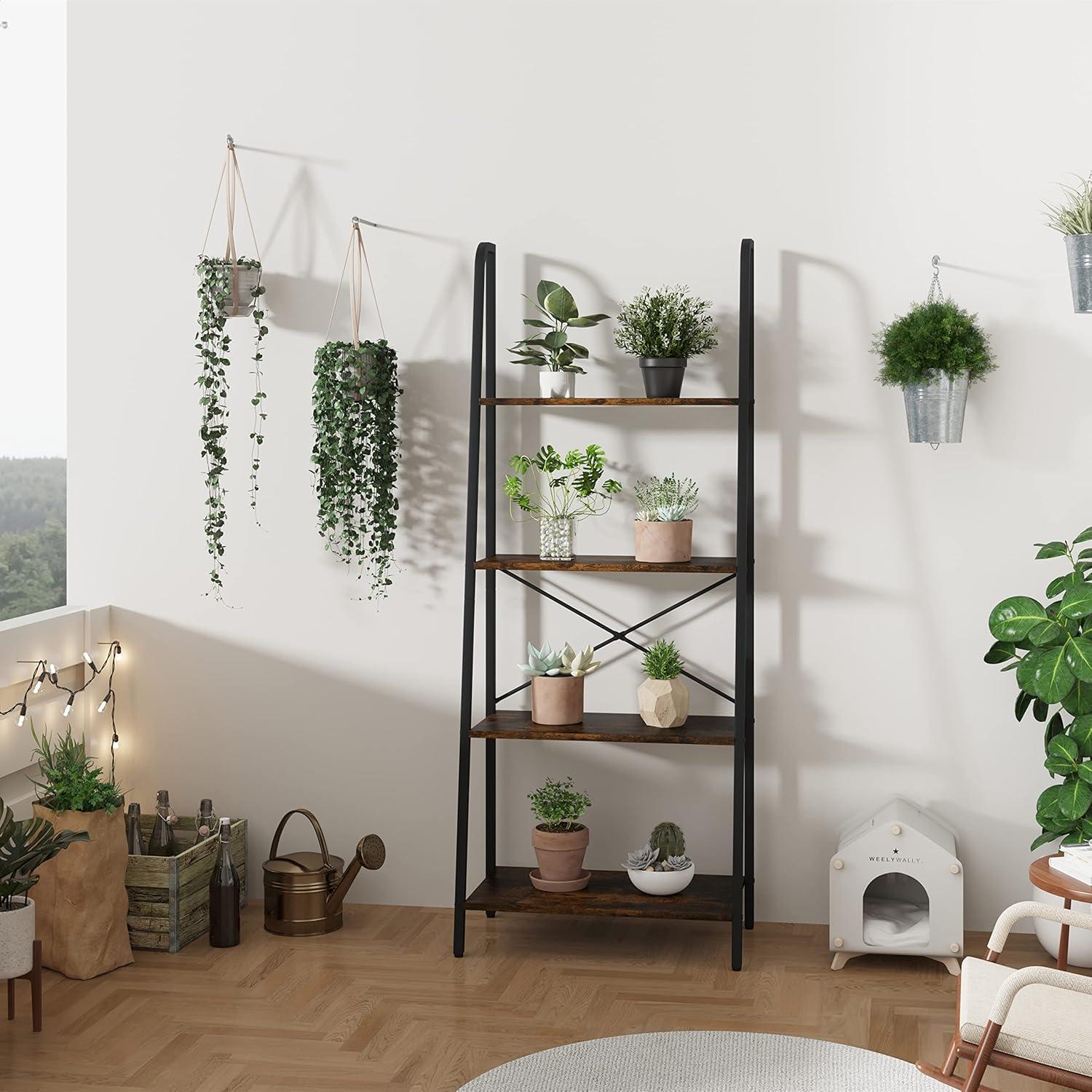 Novilla Bookshelf, 4-Tier Bookcase, Freestanding Storage Ladder Shelves for Home/Office/Living Room/Balcony/Bedroom, Brown(Brown)