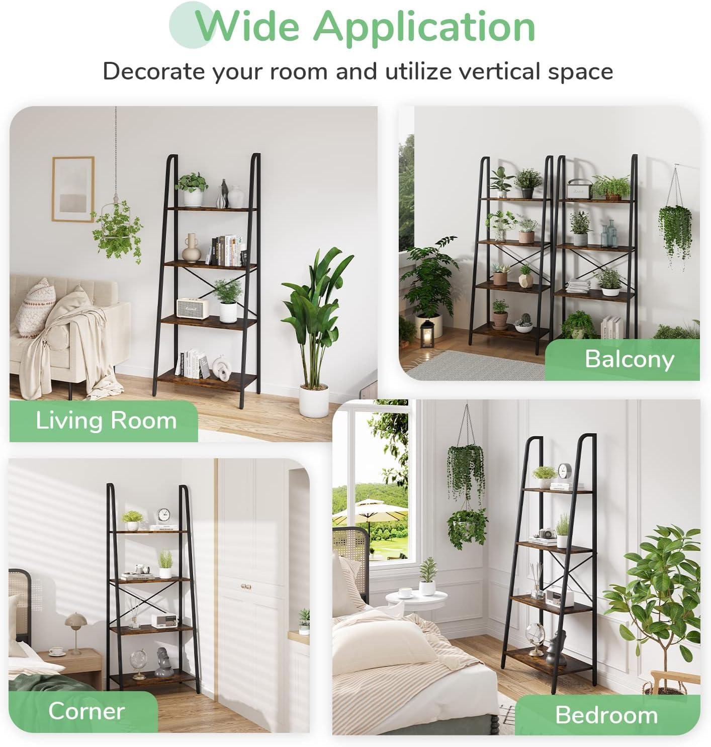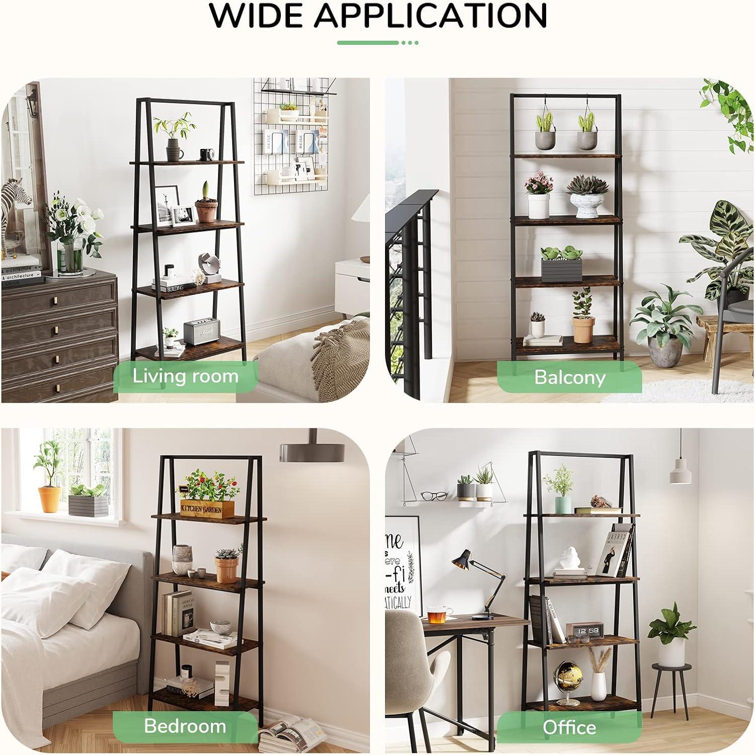 【 4-TIER FUNCTIONAL LADDER SHELVES】Steeped in rustic style, this tall bookshelf offer enough place for your storage and display needs. Line the shelves with green plants, books, decorations, or picture frames for a unique storage rack.
