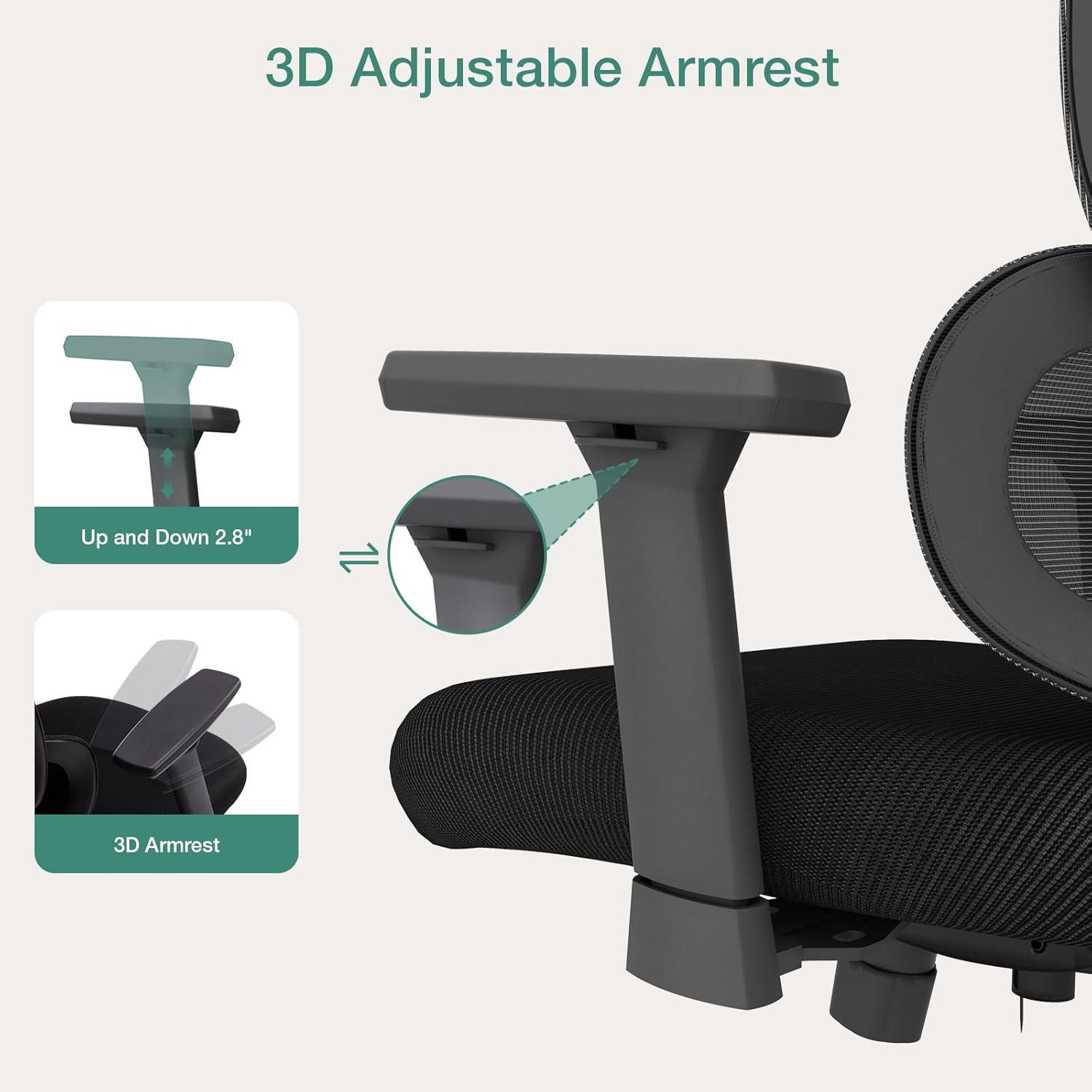 Separated Adjustable Lumbar Support: The mesh lumbar support of the home office desk chair enables ventilation and heat dissipation, while the 2.2-inch vertical adjustment range offers a superior fit for your lumbar spine. It delivers efficient support according to the weight of your waist, thereby easing lumbar pressure.