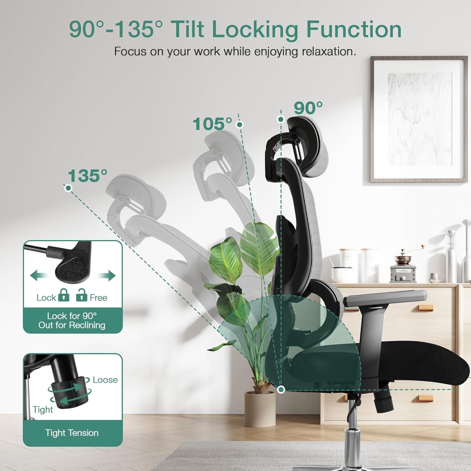 High Back Ergonomic Chair: Our ergonomic office chair is designed based on the proportions of human seating posture, providing effective support for your head, neck, shoulders, back, waist, arms, hips, and other areas. It impeccably conforms to the curvature of your spine, allowing you to sit for extended periods without fatigue and enjoy an comfort sitting experience.