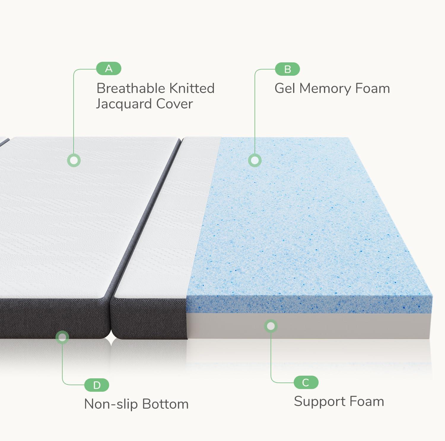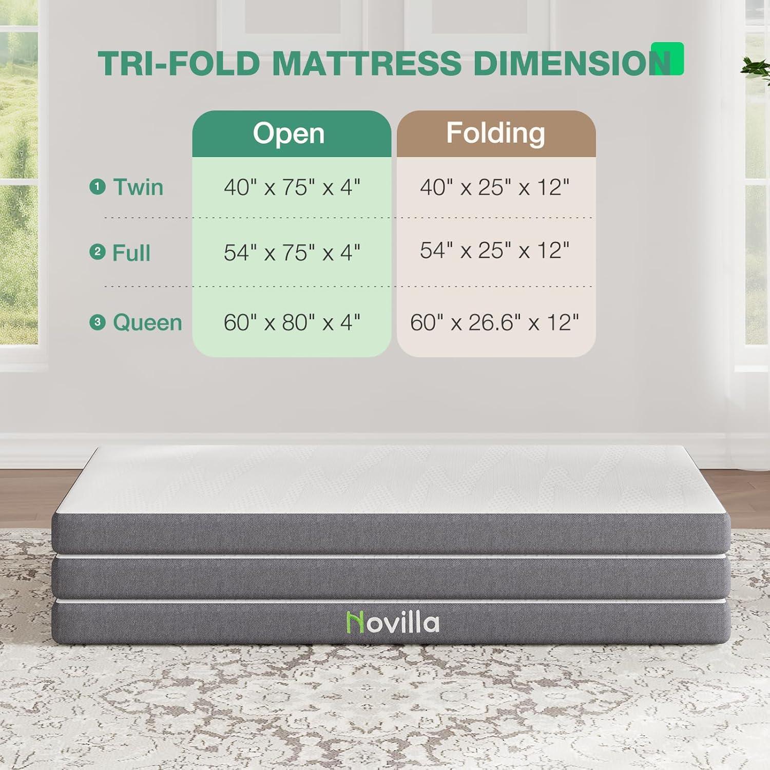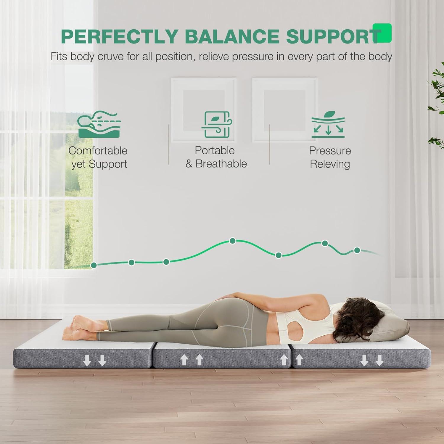 UPGRADE COMBINATION IMPROVES DURABILITY and STABILITY- This 4 inch folding mattress features 2-layer responsive comfort foam with higher density. The top layer is designed to relieve body points, while the extra about high-density foam is a base to keep the tri-folding mattress supportive and durable. The non-slip fabric on the bottom helps it stay in place securely.