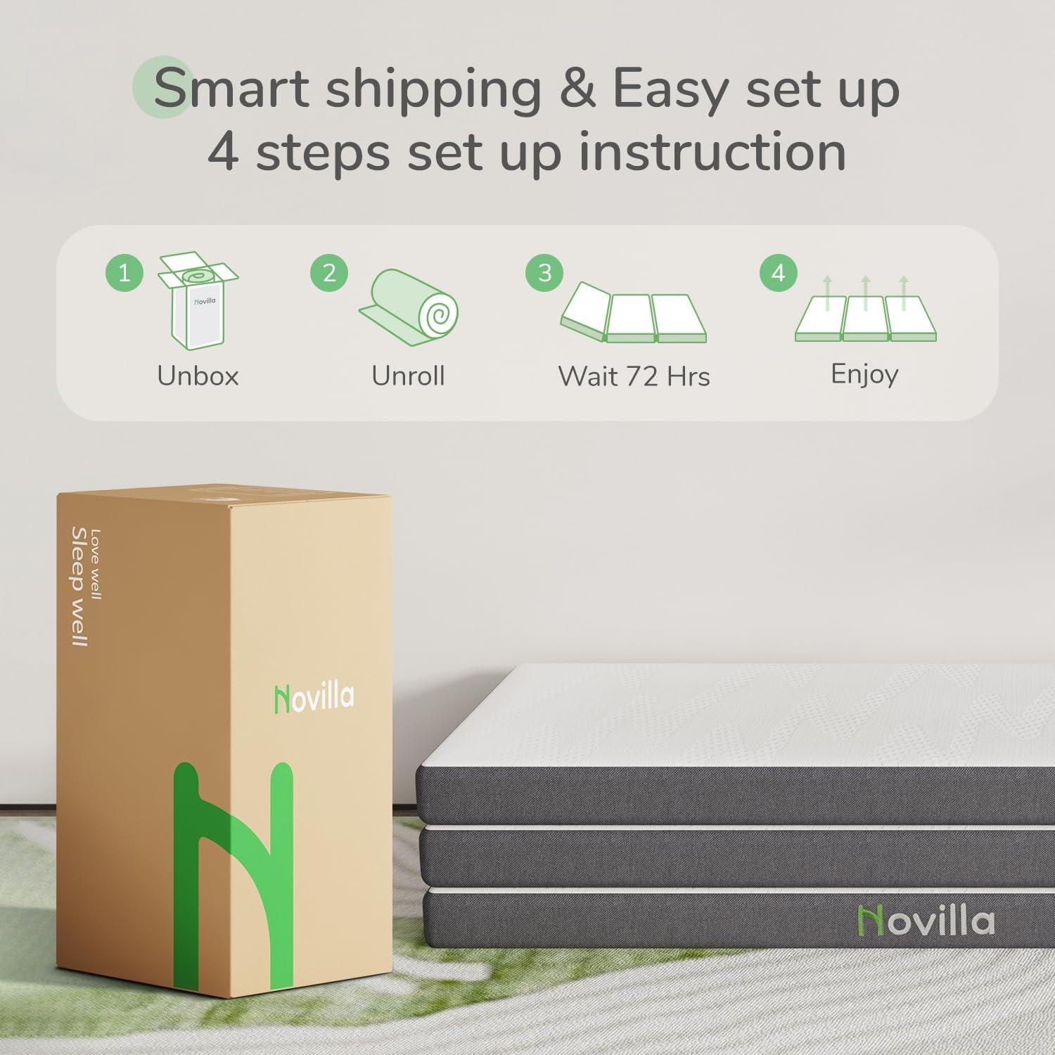 FOLDABLE MATTRESS IN A BOX- Mattress is expertly compressed, vacuum-packed, and then rolled into a compact box to prevent staining or shipping damage. After receiving the product, we recommend waiting for 48-72 hours for it to regain its full shape.