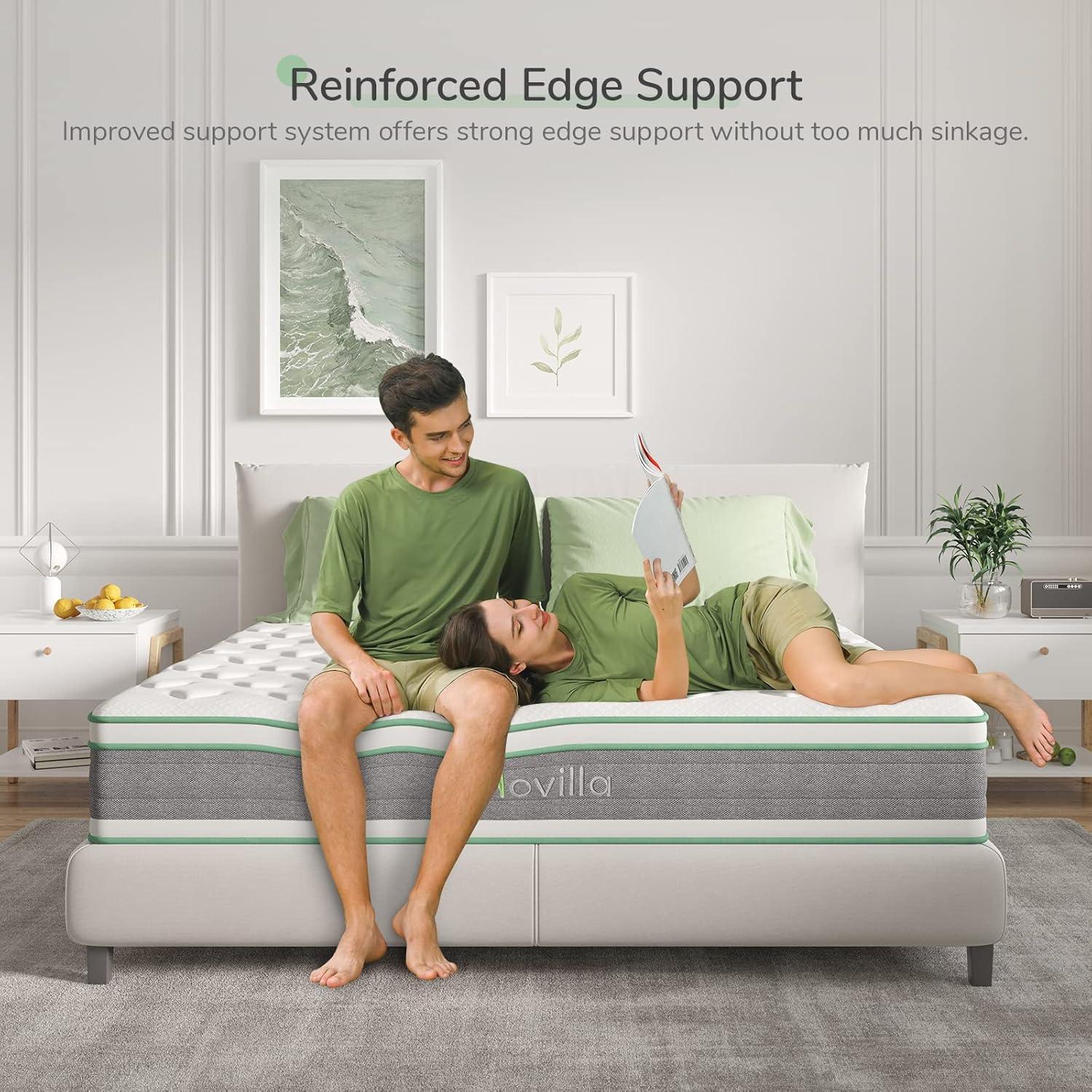 imageNovilla Full Mattress 12 Inch Hybrid Mattress in a Box Innerspring Mattresses with Gel Memory Foam for a Cool Sleep Pressure Relief Medium Firm with Pillow Top GrooveWhitegreygreen