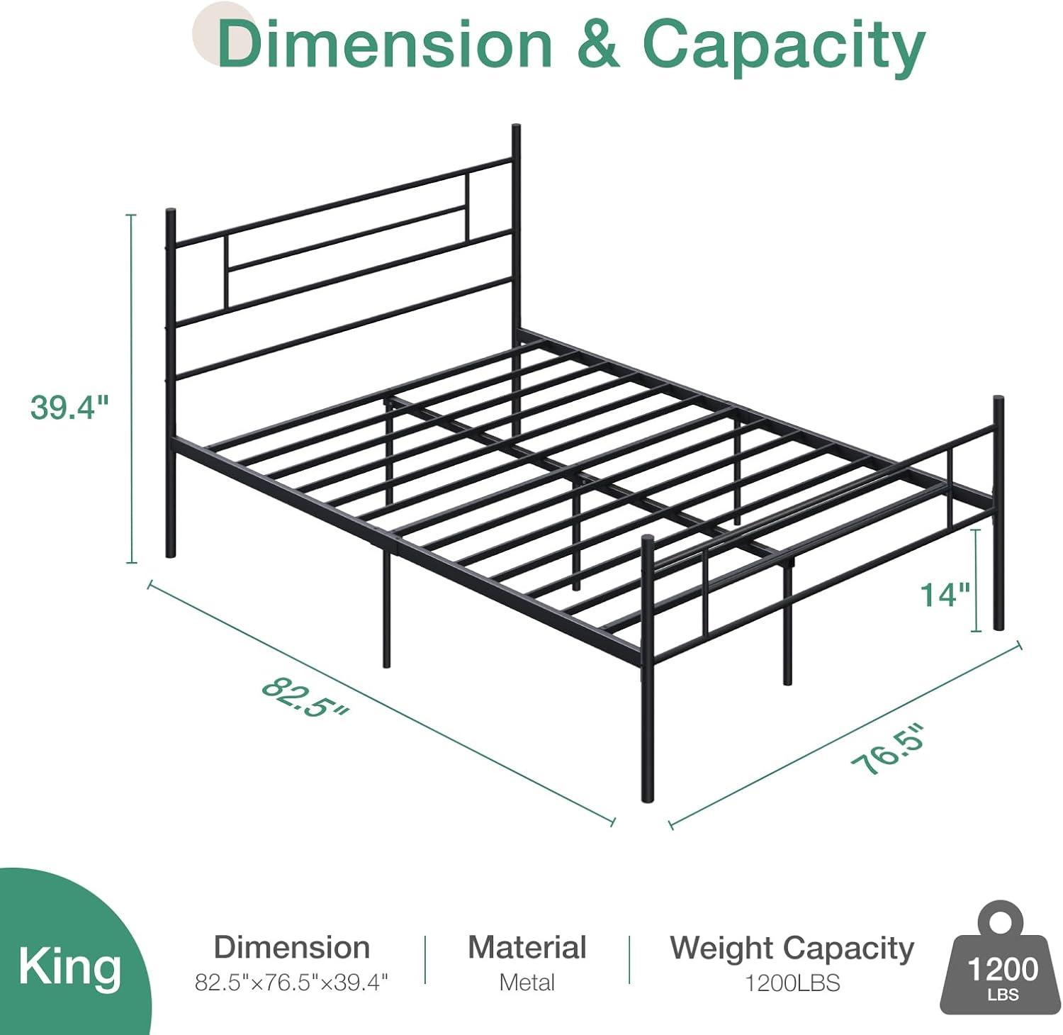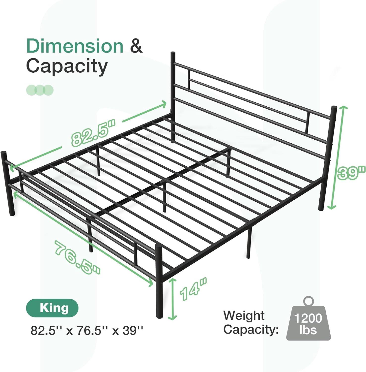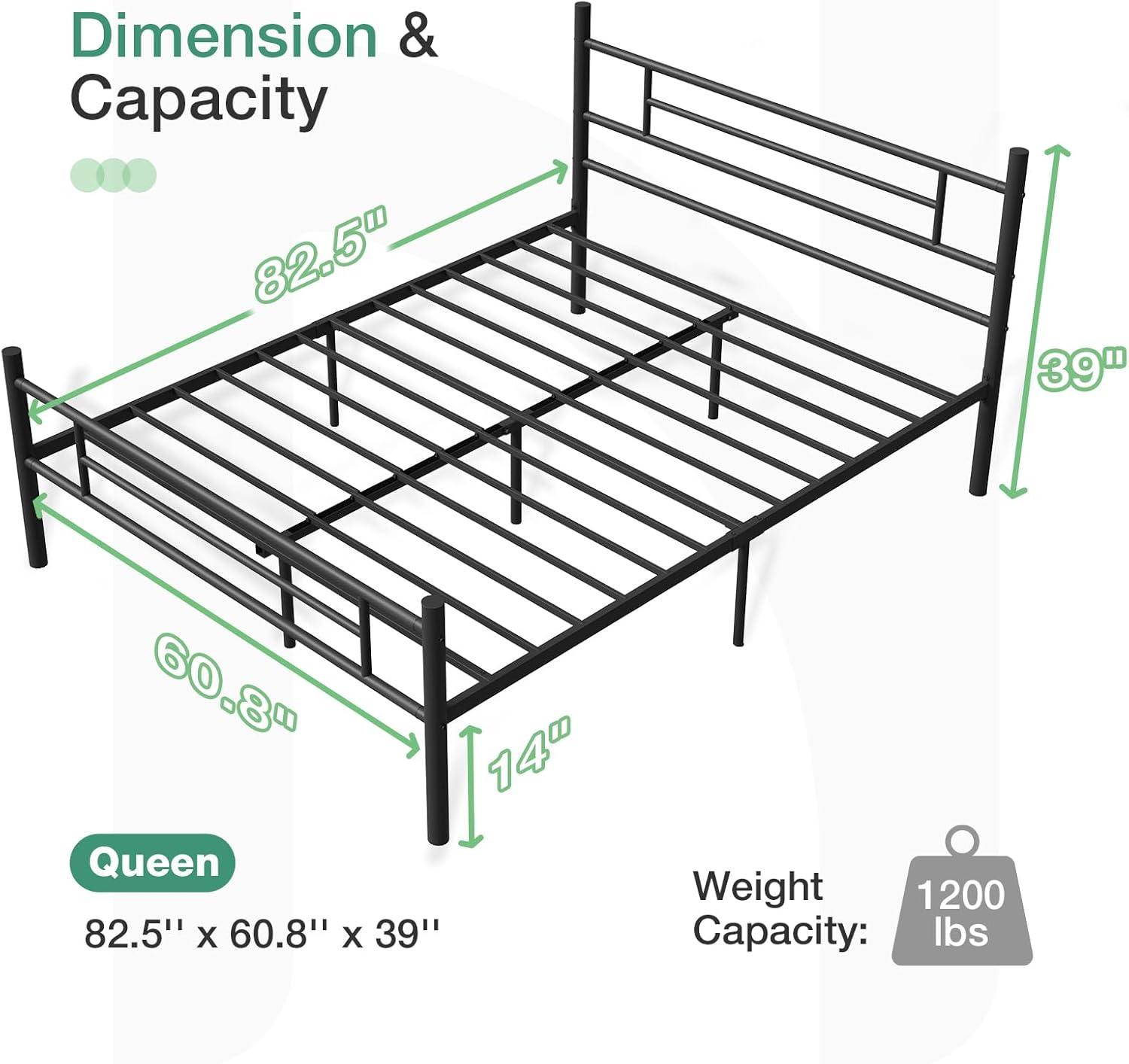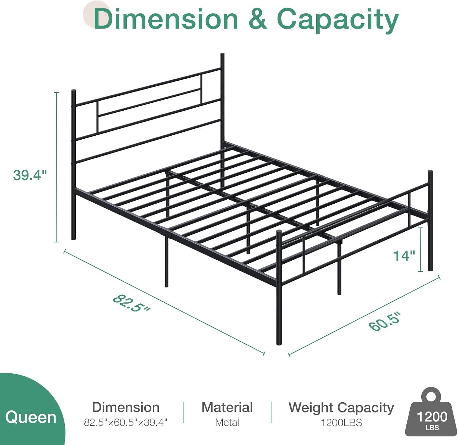 High Quality: Our bed frame is made from premium heavy duty sturdy metal material, ensuring a stable and durable support for your full size mattress. With a weight capacity of up to 1200 pounds, it provides a secure and comfortable sleep experience.