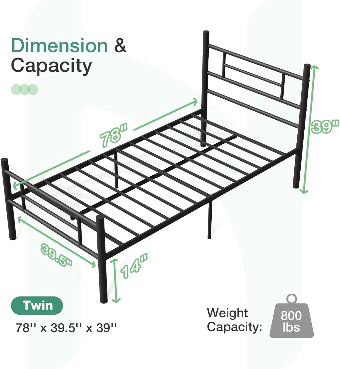 Novilla Simple Metal Bed Frame Mattress Foundation with Headboard & Footboard