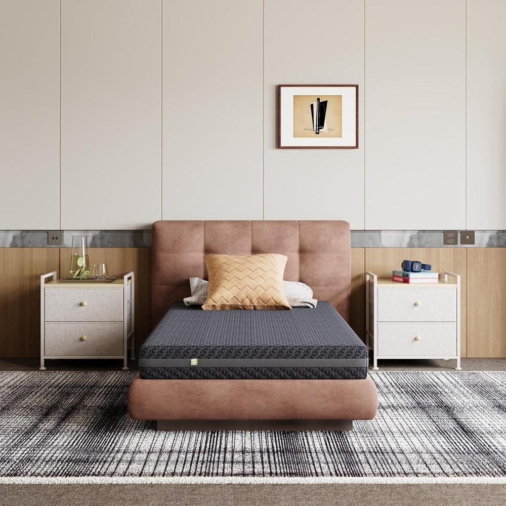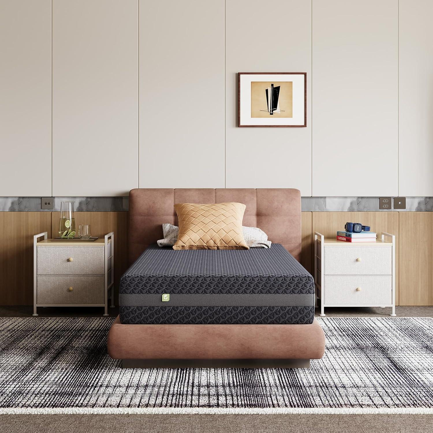 【Modern Aesthetic & Certified Safe Materials】Wrapped in a soft, skin-friendly knit fabric with a dark gray diamond pattern, this king size mattress delivers a clean, modern look with a refined, premium feel. The king mattress features an OEKO-TEX certified cover tested for harmful substances, offering added peace of mind while complementing a wide range of bedroom styles with a polished appearance.
