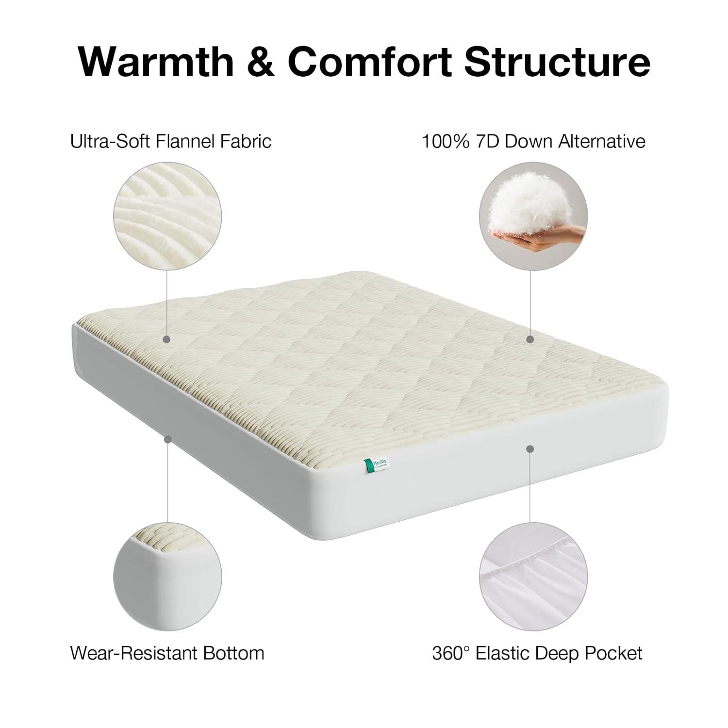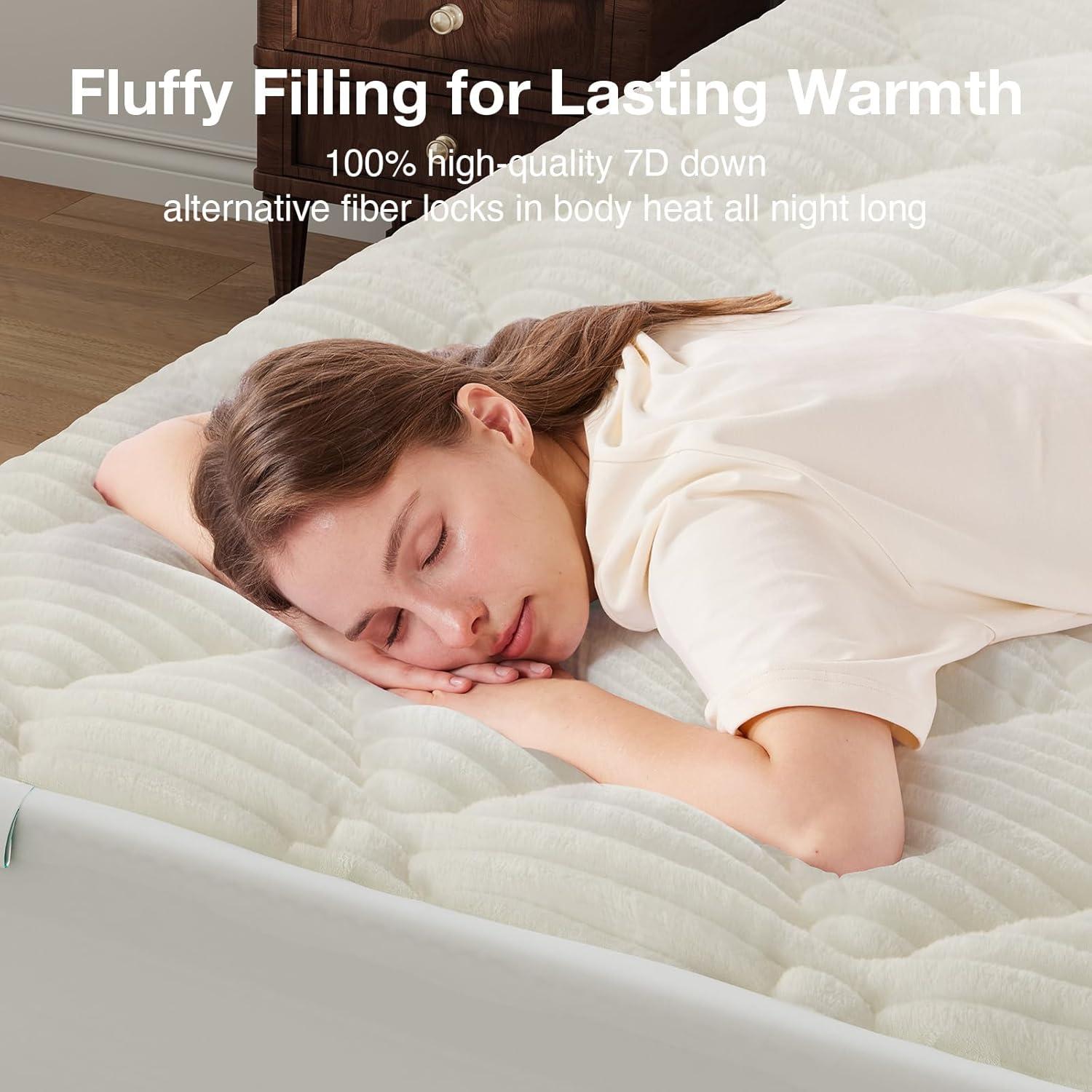 【All-Night Warmth】This plush mattress cover engineered for winter comfort with fine-weave flannel surface, which effectively trapping your body heat to create a consistently warm sleep surface all night long. It's the ideal, electricity-free solution for chilly bedrooms, winter months, and anyone who feels cold easily, ensuring you wake up warm and refreshed.