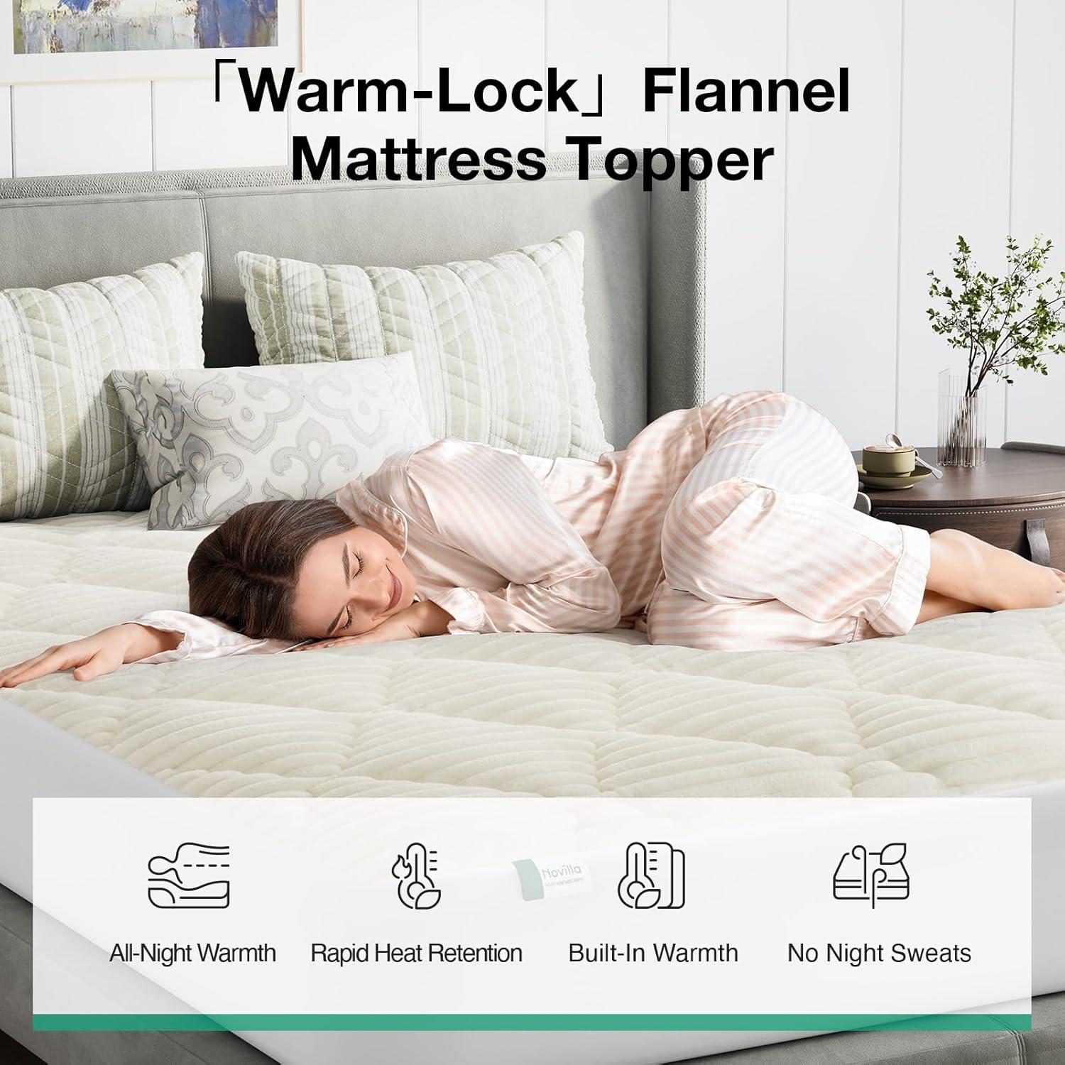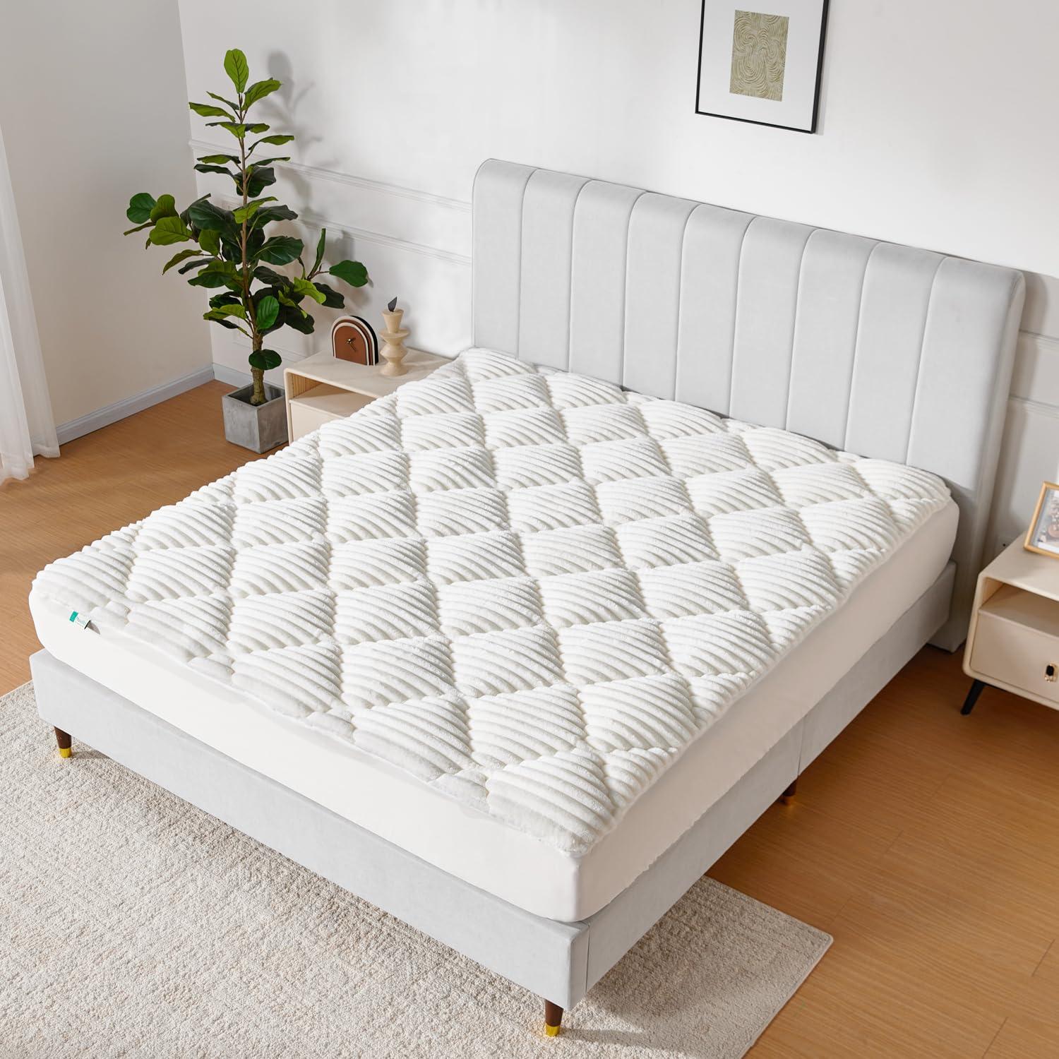 Novilla King Mattress Topper - Cloud-Like Softness Mattress Pad with Plush Flannel, Electric Blanket Alternative for Cold Sleepers, Deep Pocket 8-21 Inch, Machine Washable(White)
