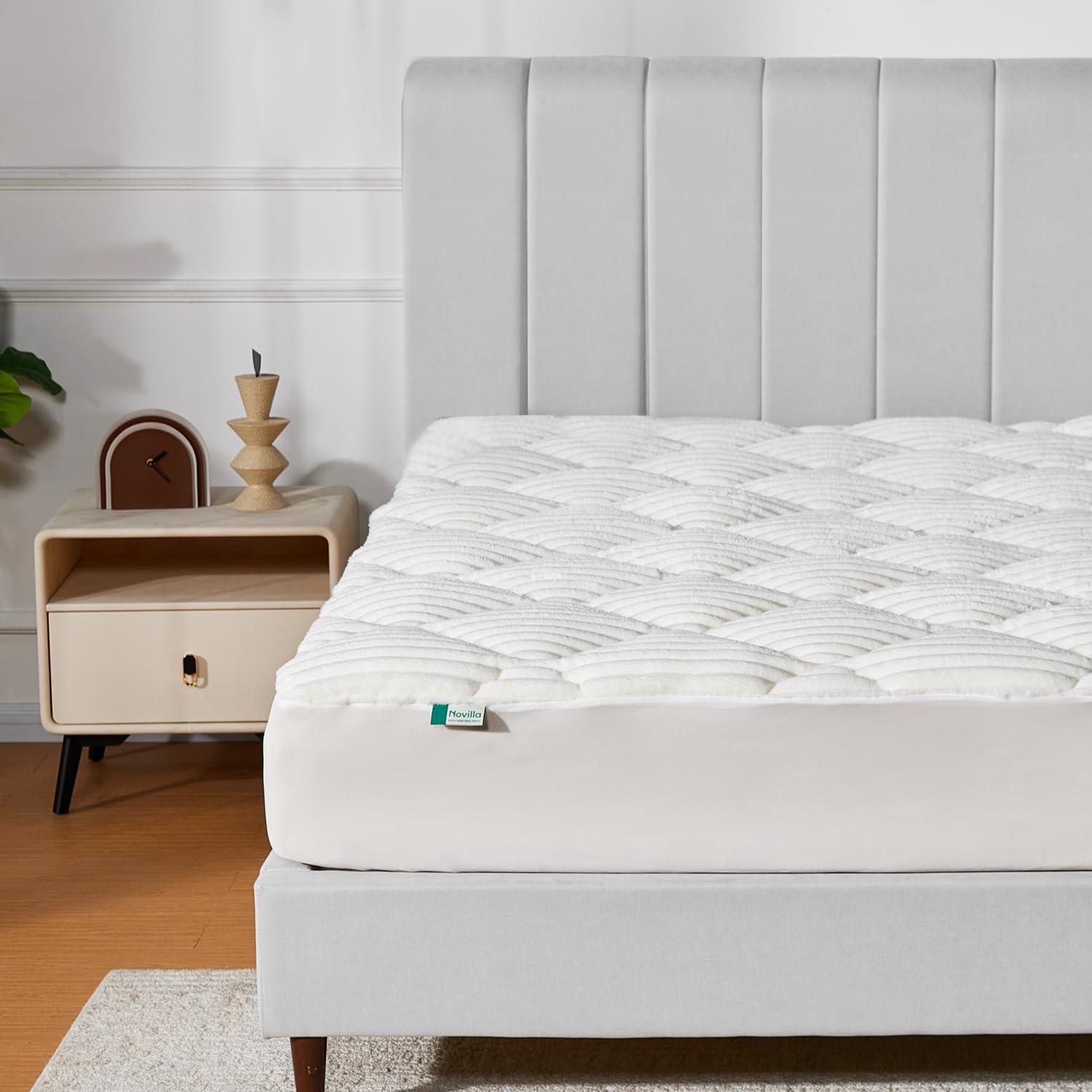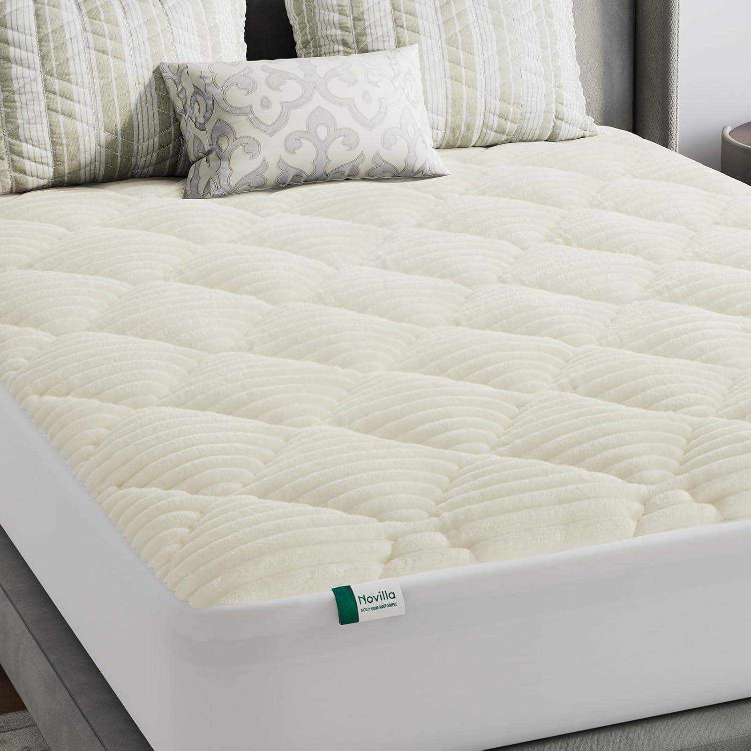 Novilla King Mattress Topper – Cloud-Like Softness Mattress Pad with Plush Flannel, Electric Blanket Alternative for Cold Sleepers, Deep Pocket 8-21 Inch, Machine Washable(White)