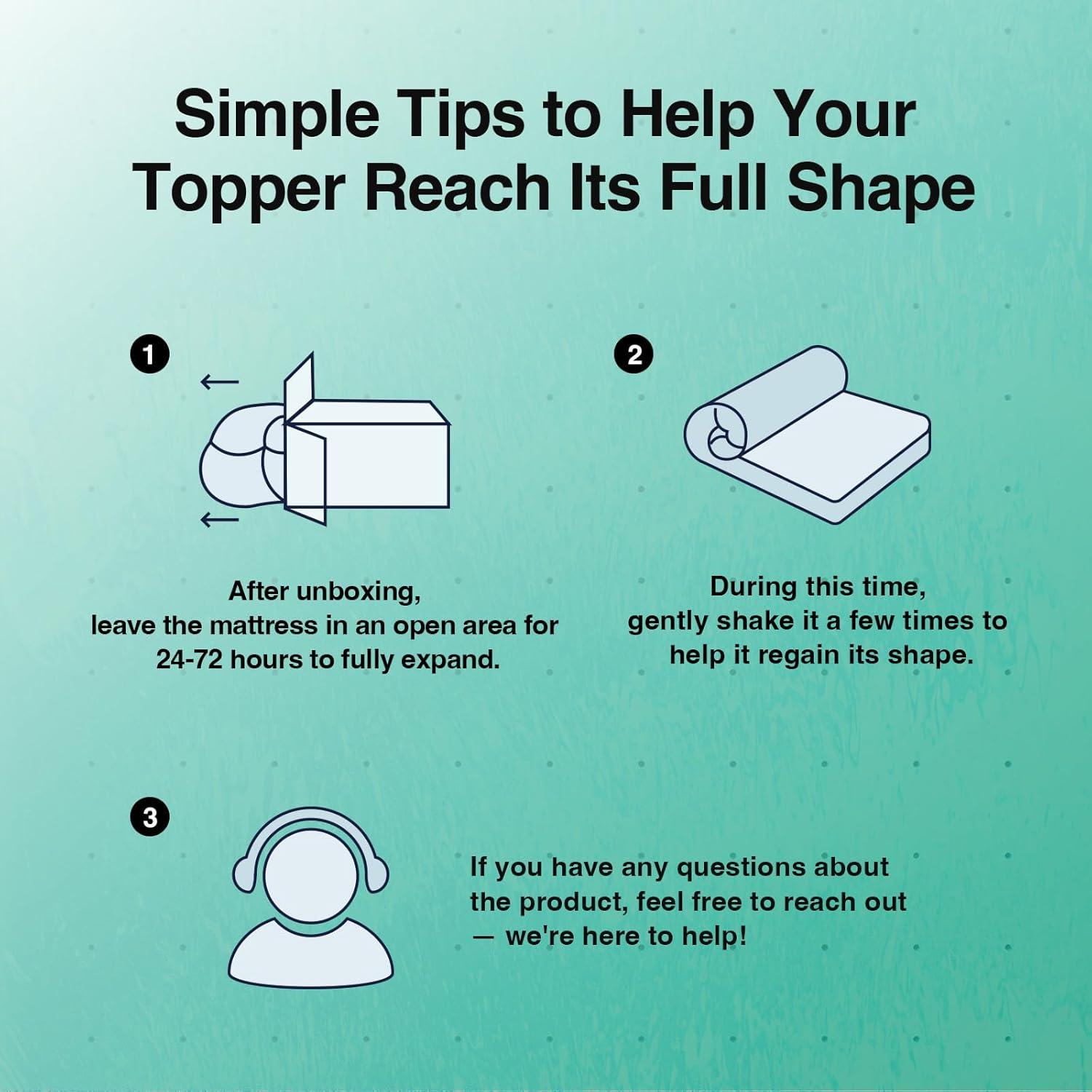 REVITALIZE YOUR SLEEP SURFACE – Breathe new life into your bed. Choose from two versatile thicknesses: the 2-inch option for balanced support on an aging mattress, or the 3-inch option for added plushness on a firm surface. It's an ideal way to enhance comfort and extend the life of your current mattress.
