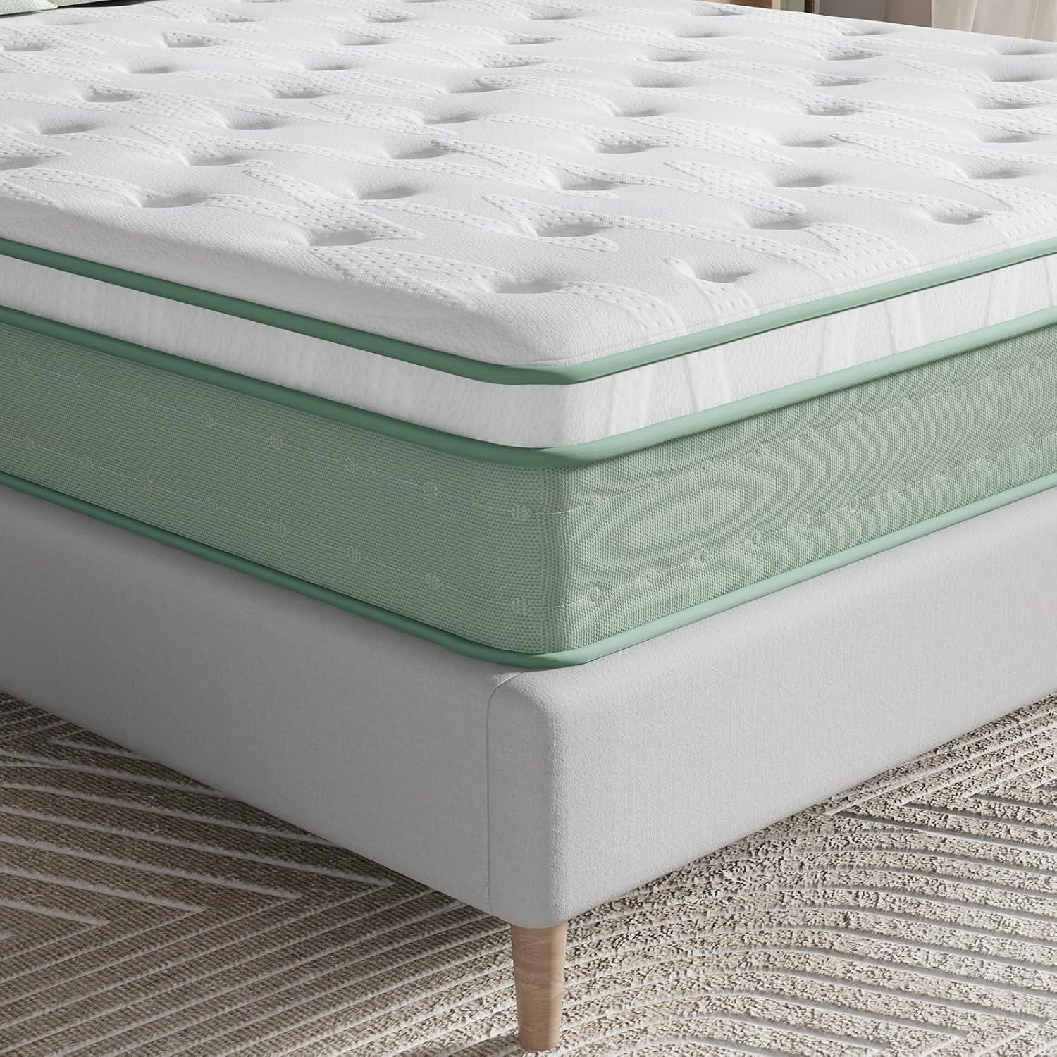 Novilla Full Mattress 12 Inch Hybrid Mattress in a Box, Innerspring Mattresses with Gel Memory Foam for a Cool Sleep, Pressure Relief, Medium Firm with Pillow Top, Groove(White&grey&green)