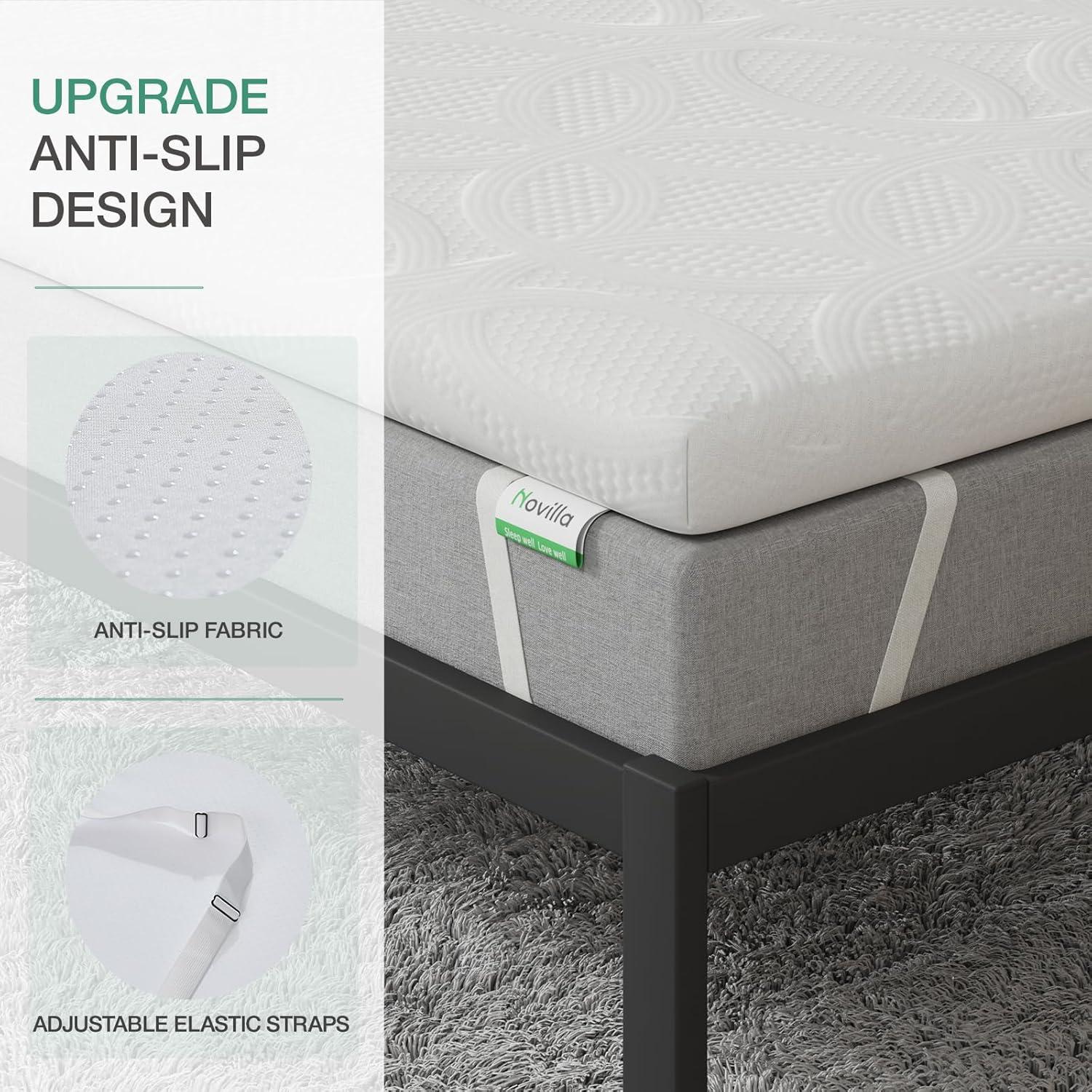 imageNovilla Mattress Topper Queen 3 Inch Dual Layer Memory Foam Mattress Topper Enhance Cooling Supportive ampamp Pressure Relieving with Breathable CoverQueen Size Yozora4 Inch