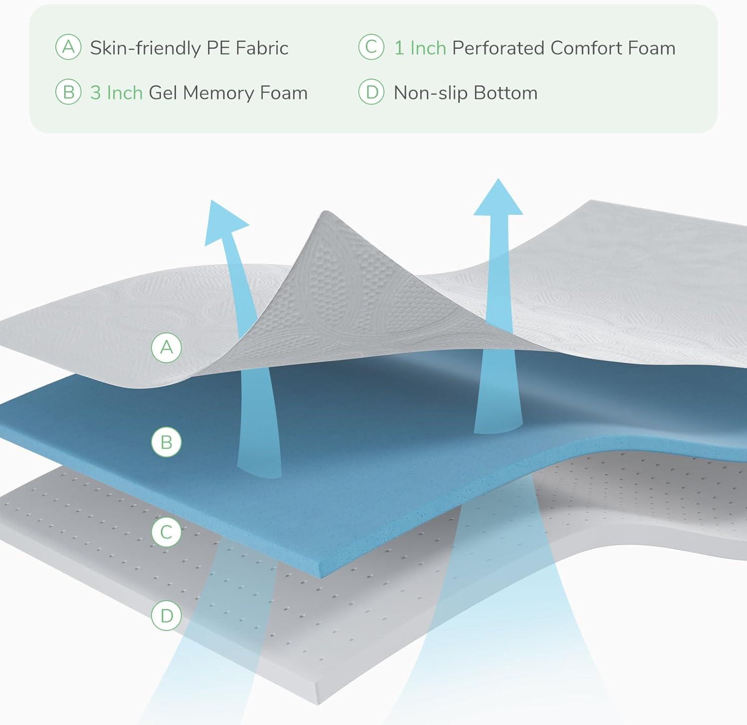 BRINGS NEW LIFE TO YOUR MATTRESS and MULTI-USAGE- Saving yourself from the uncomfortable bed without spending high replacement fees, you need one Novilla queen mattress topper. Our 3 inch mattress toppers utilizes a 2-Layer design. Includes 1inch cooling gel memory foam and 2inch comfort foam, adds extra plushness and softens firm mattresses, bounces of your traditional spring mattress, enjoys minimized motion transfer and prolongs your mattress life.Suitable for sofa bed, guest bed, RV, college dorms, Tatami, camping, outdoor Yoga and more.