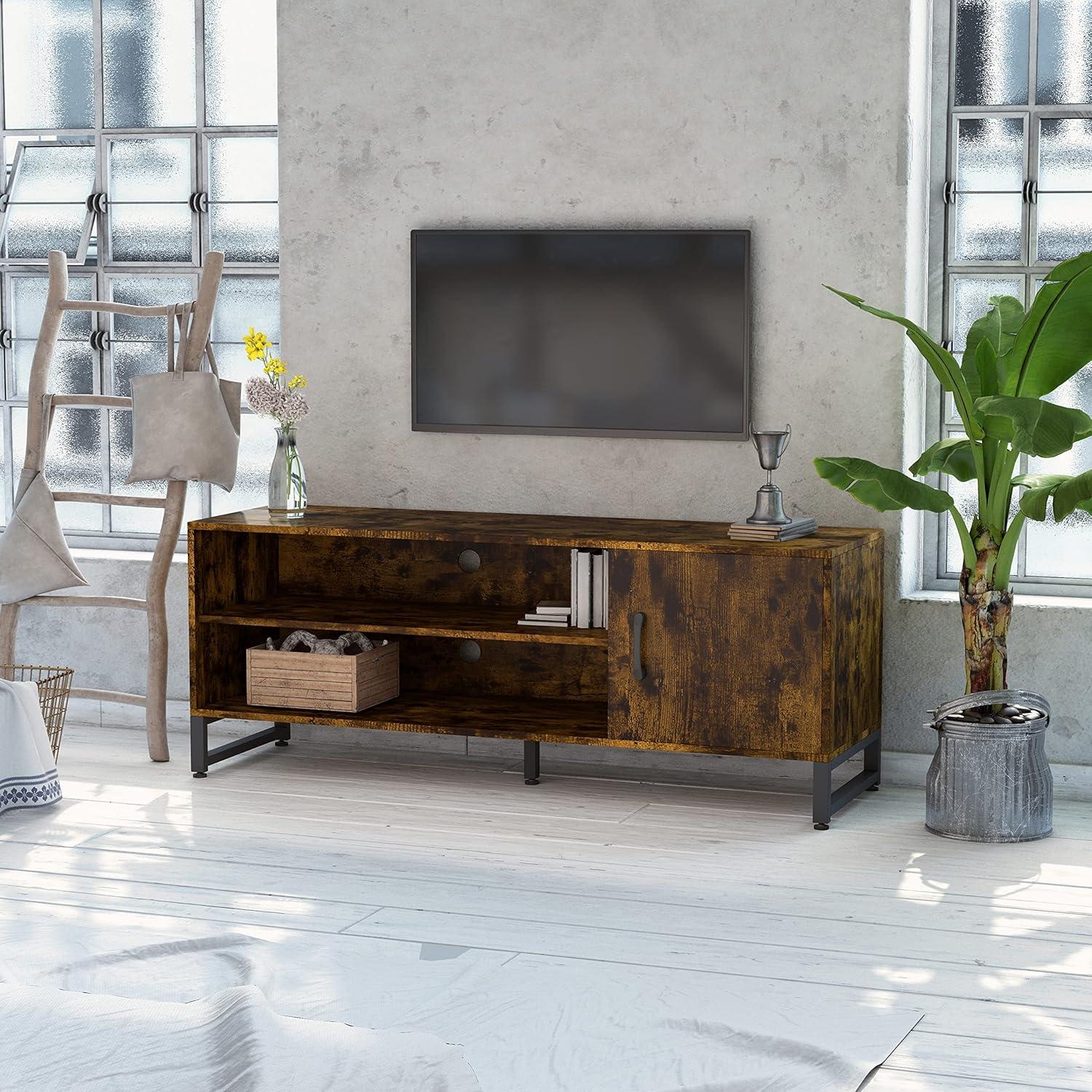 Novilla Media Console, TV Stand for TV's up to 50" Flat Screen Living Room Storage Cabinet Doors and Shelves Entertainment Center, 43 Inches, Brown(Brown)