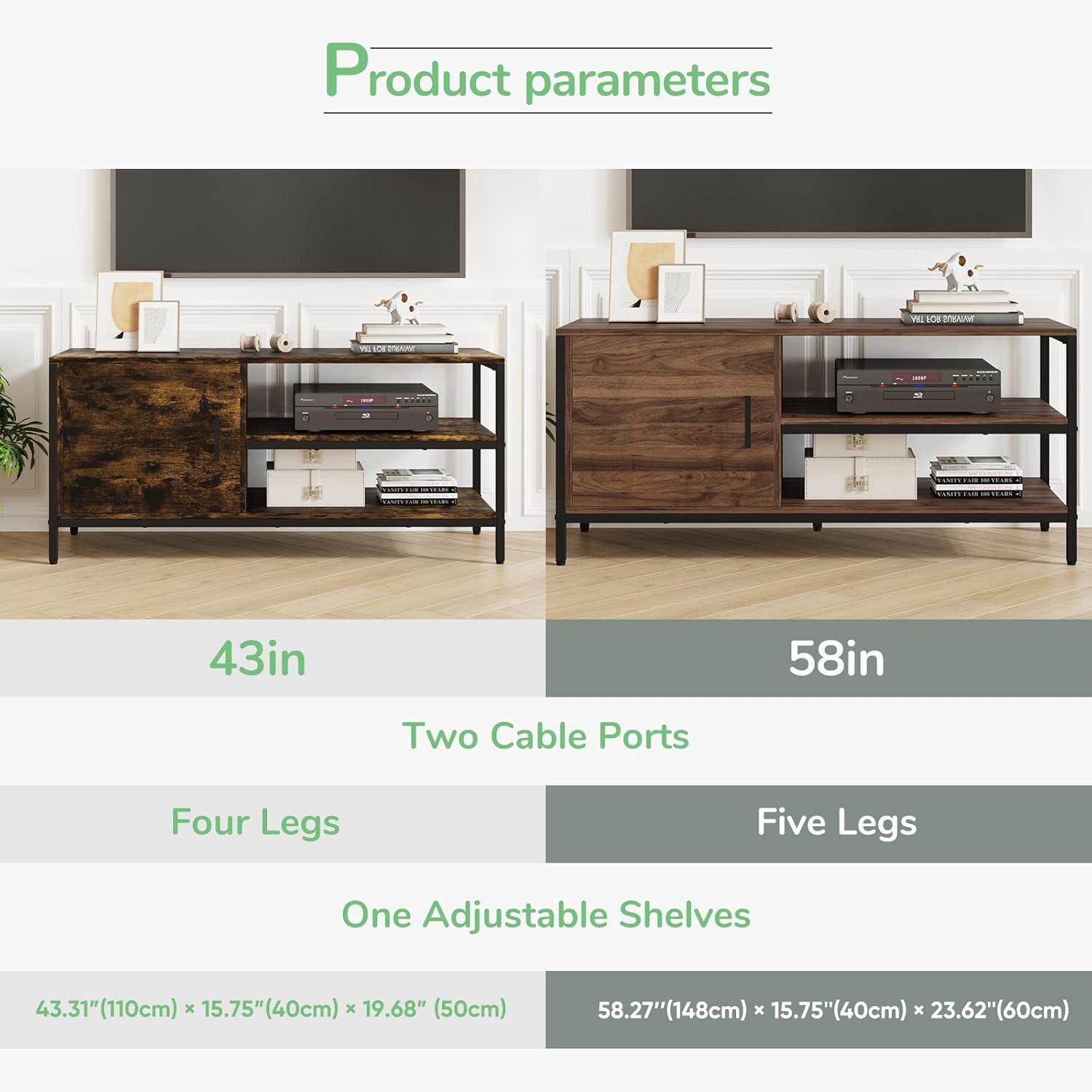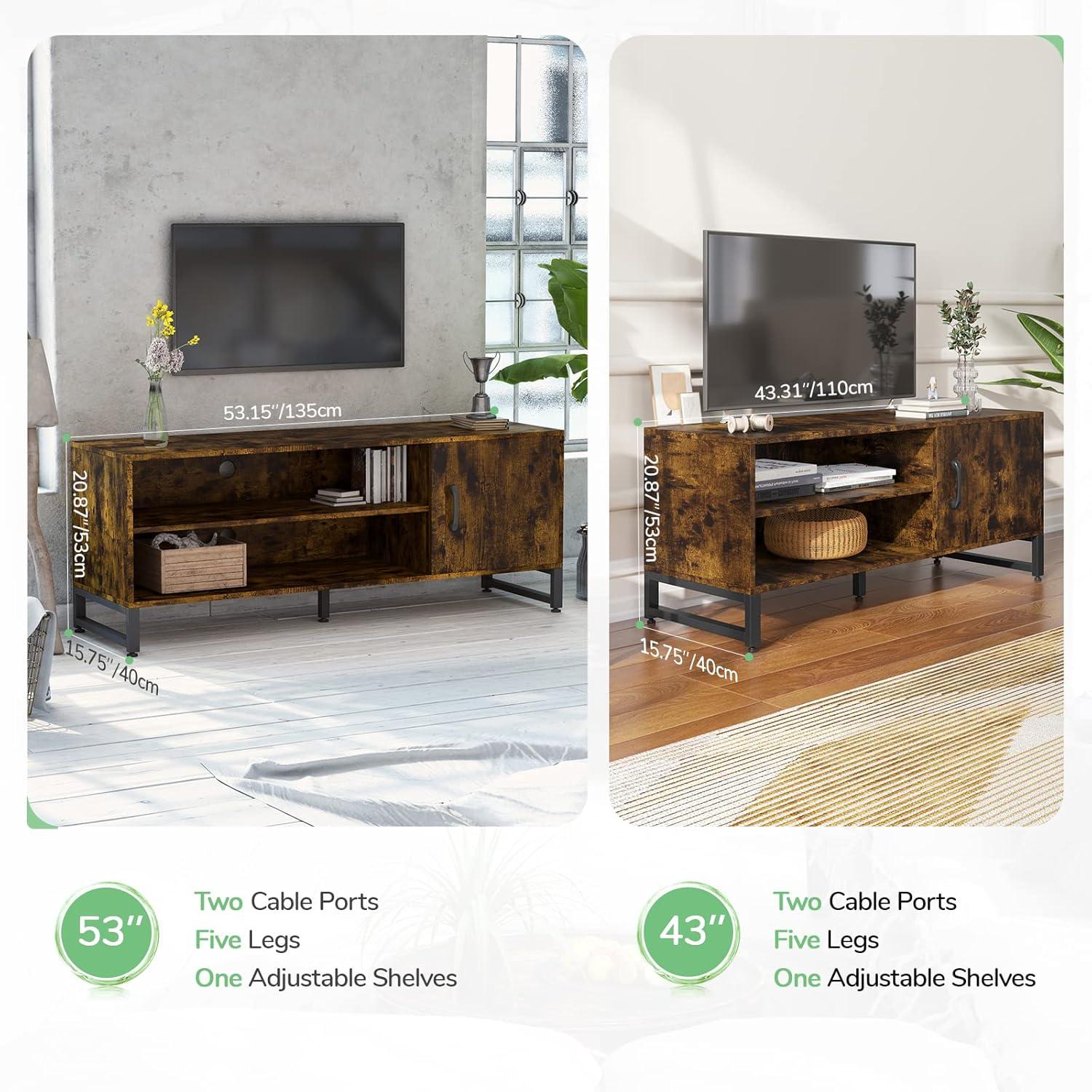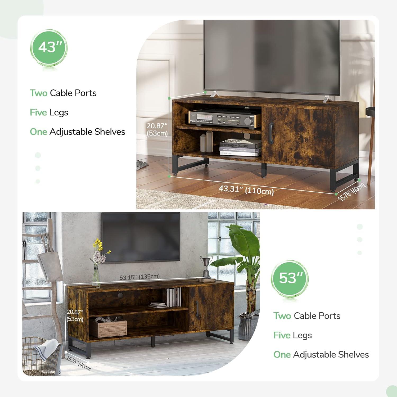 【PROPER SIZE】Overall dimension: 20.87” H × 15.75” W × 43.31” L. These TV stands are big enough to support TVs up to 50”. Thickened board top surface supports up to 60 kg(132lbs).