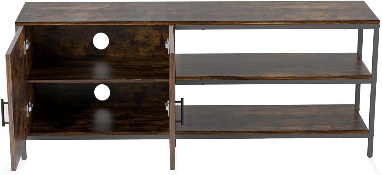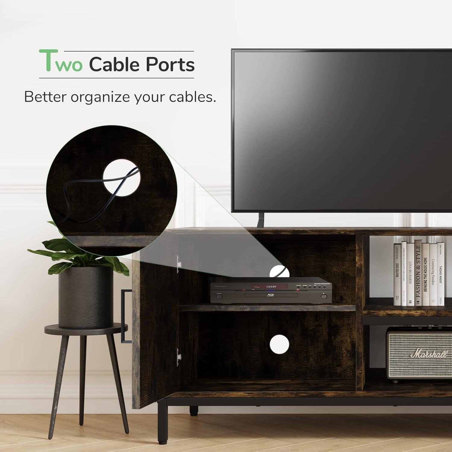 【AMPLE STORAGE】One removable open shelf and three holes on each side panel, allow you to adjust to three different heights to organize your things. Two cord management holes on the back of the TV console make your messy wires tidy.