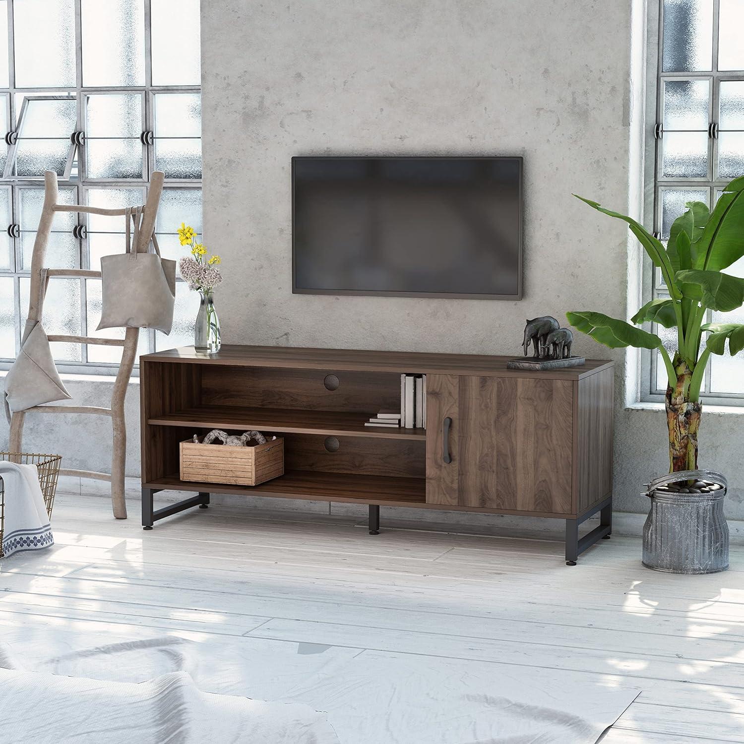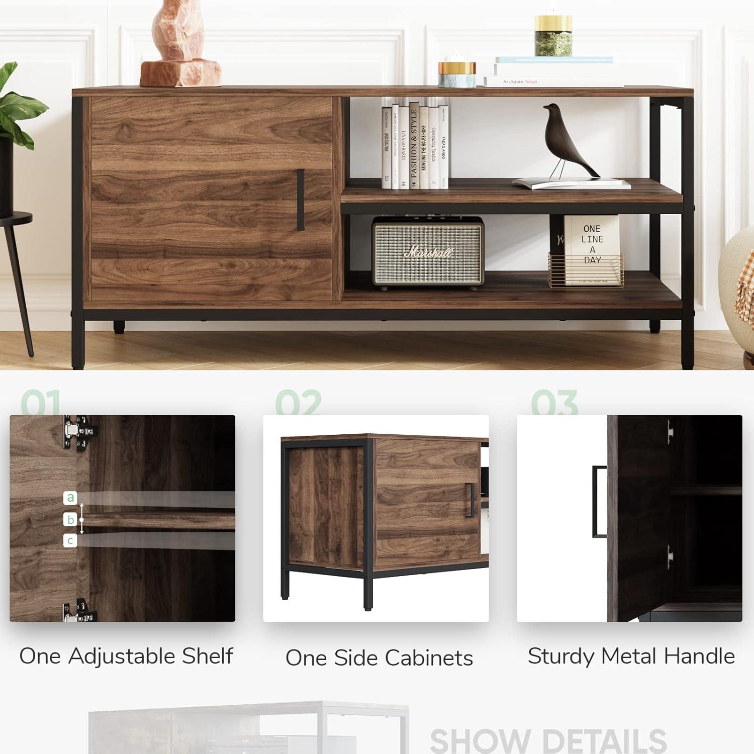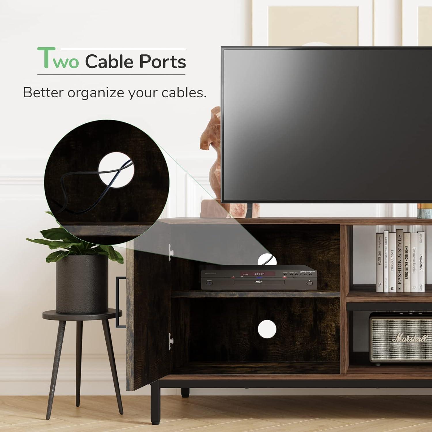 【AMPLE STORAGE】One removable open shelf and three holes on each side panel, allow you to adjust to three different heights to organize your things. Two cord management holes on the back of the TV console make your messy wires tidy.
