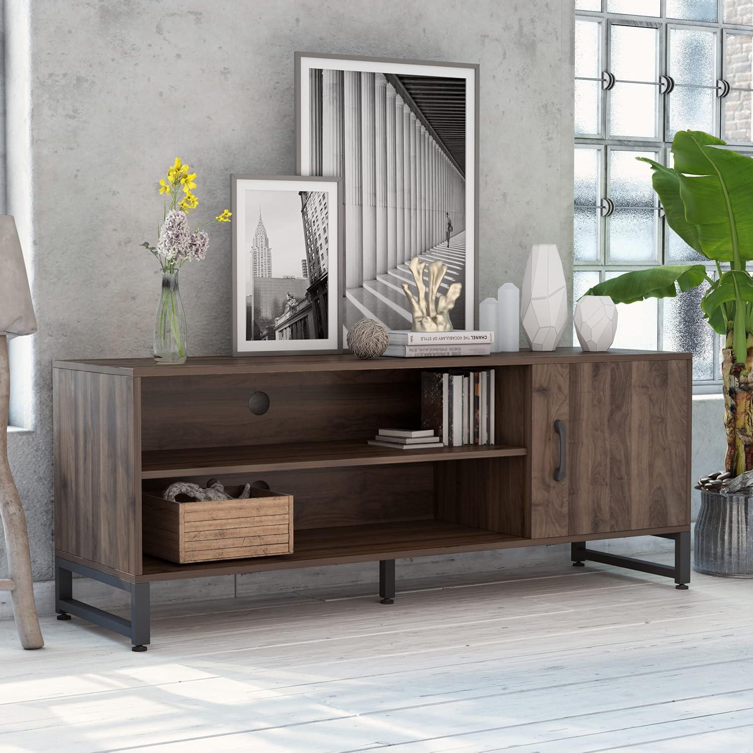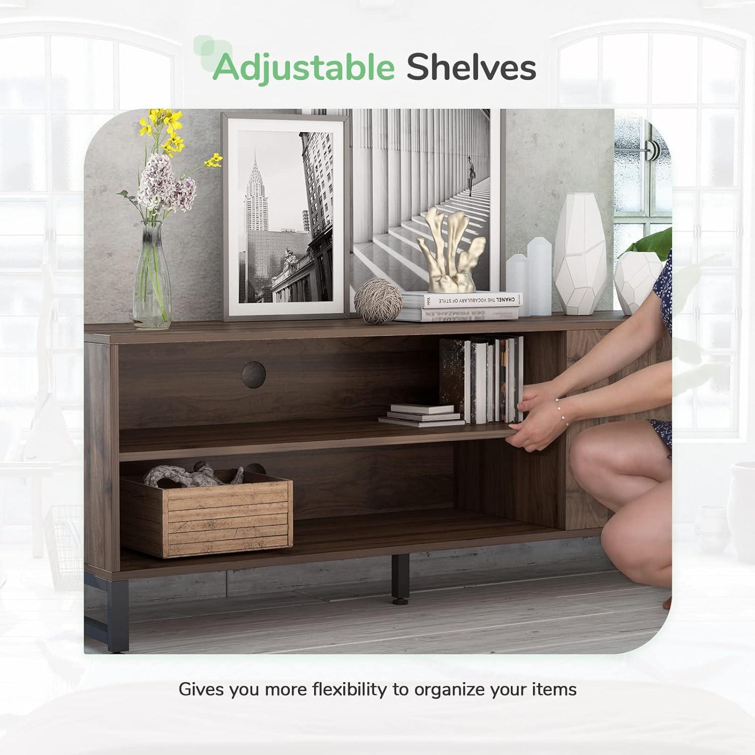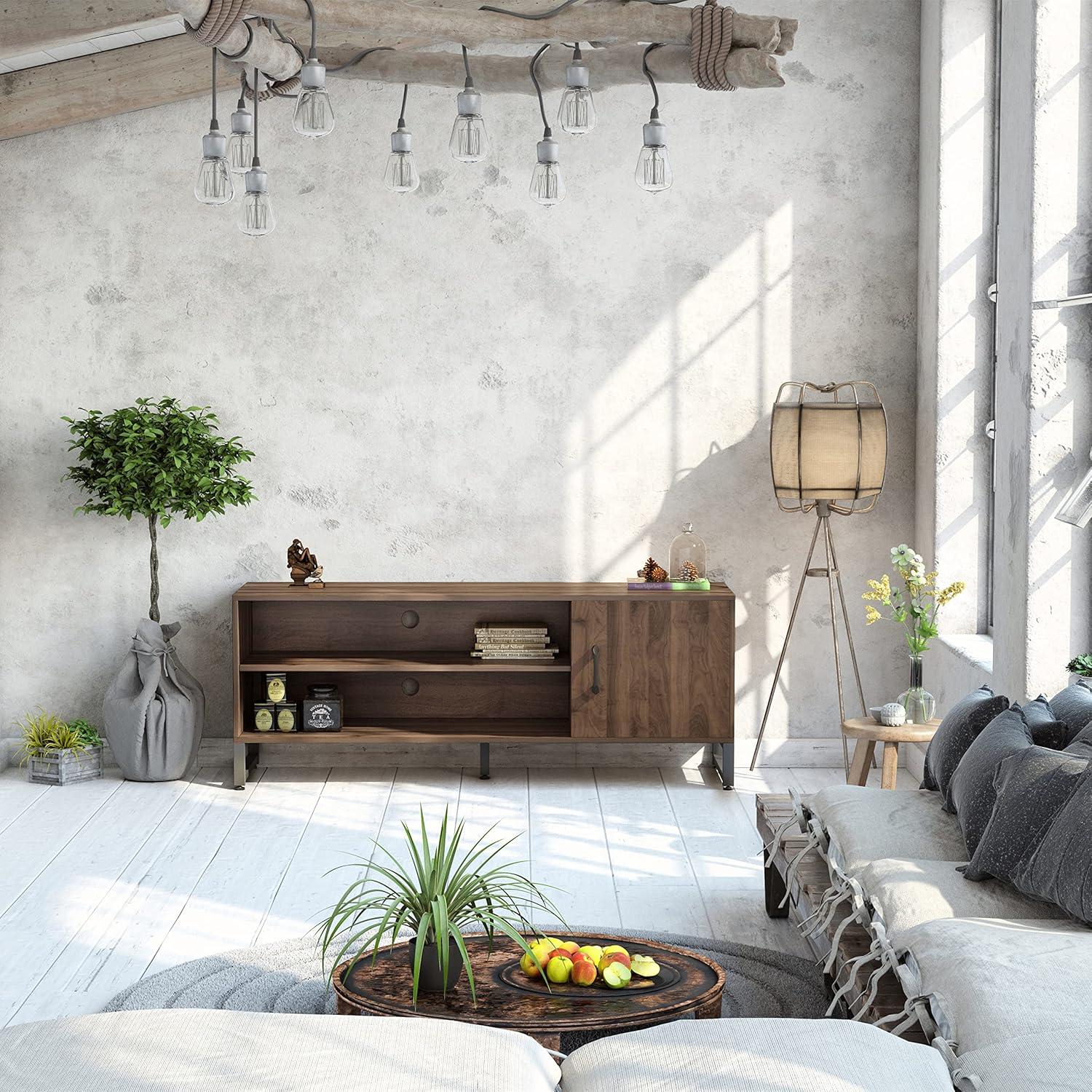 【AMPLE STORAGE】One removable open shelf and three holes on each side panel, allow you to adjust to three different heights to organize your things. Two cord management holes on the back of the TV console make your messy wires tidy.