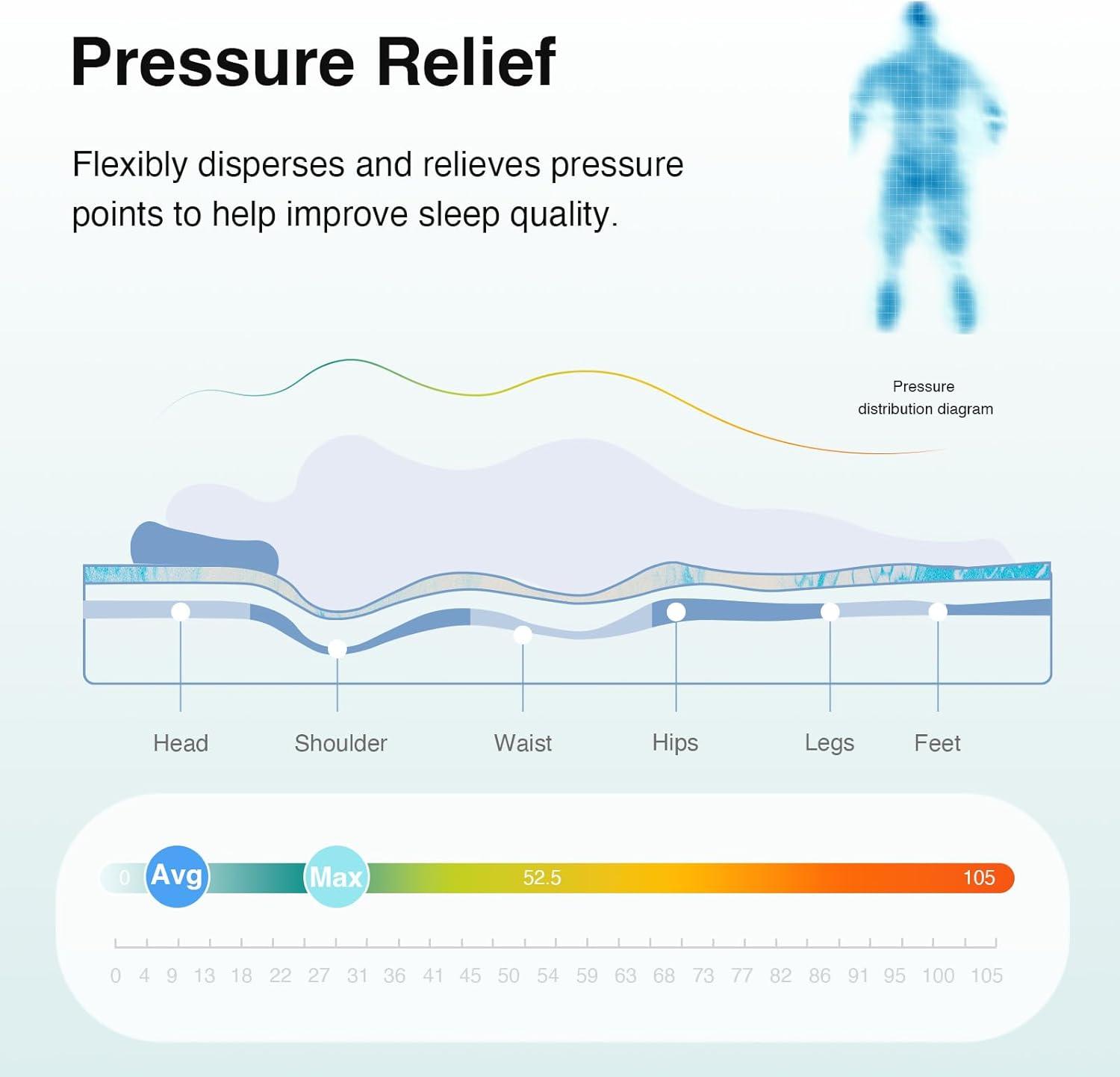 【Pressure Relief & Support 】This mattress topper is made of slow-rebound memory foam, which flexibly disperses and relieves pressure points based on your body weight. It adapts to your shape in real-time, providing balanced support for your hips, lower back, and spine, helping you enjoy a deeper, more restful sleep.