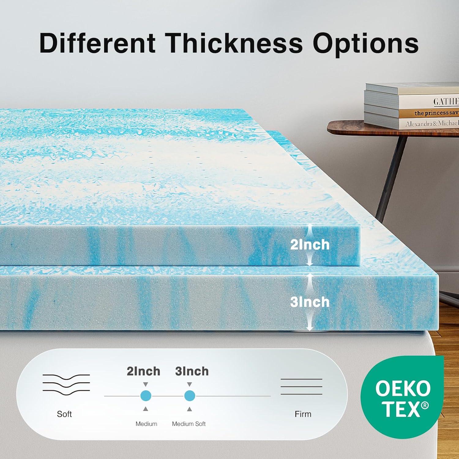 【Multiple Thickness Options】Choose the foam mattress topper comfort level that’s perfect for you. The 2-inch mattress topper provides balanced support, while the 3-inch option offers extra softness. It can breathe new life into an old mattress, soften a mattress that’s too firm, or extend the lifespan of your current mattress.
