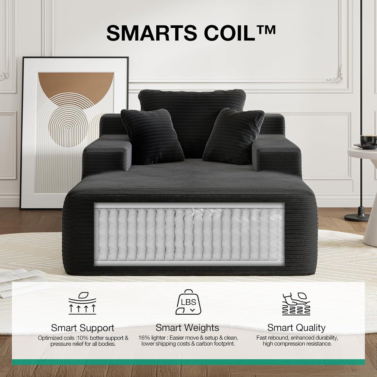 PREMIUM CORDUROY FABRIC: Our chaise lounge indoor features soft corduroy upholstery with captivating linear texture. Experience plush comfort and gentle support, enhanced by dense, durable construction that excels in winter warmth. Designed as your cloud-soft sanctuary, this boneless chair elevates relaxation while adding refined elegance to your space.