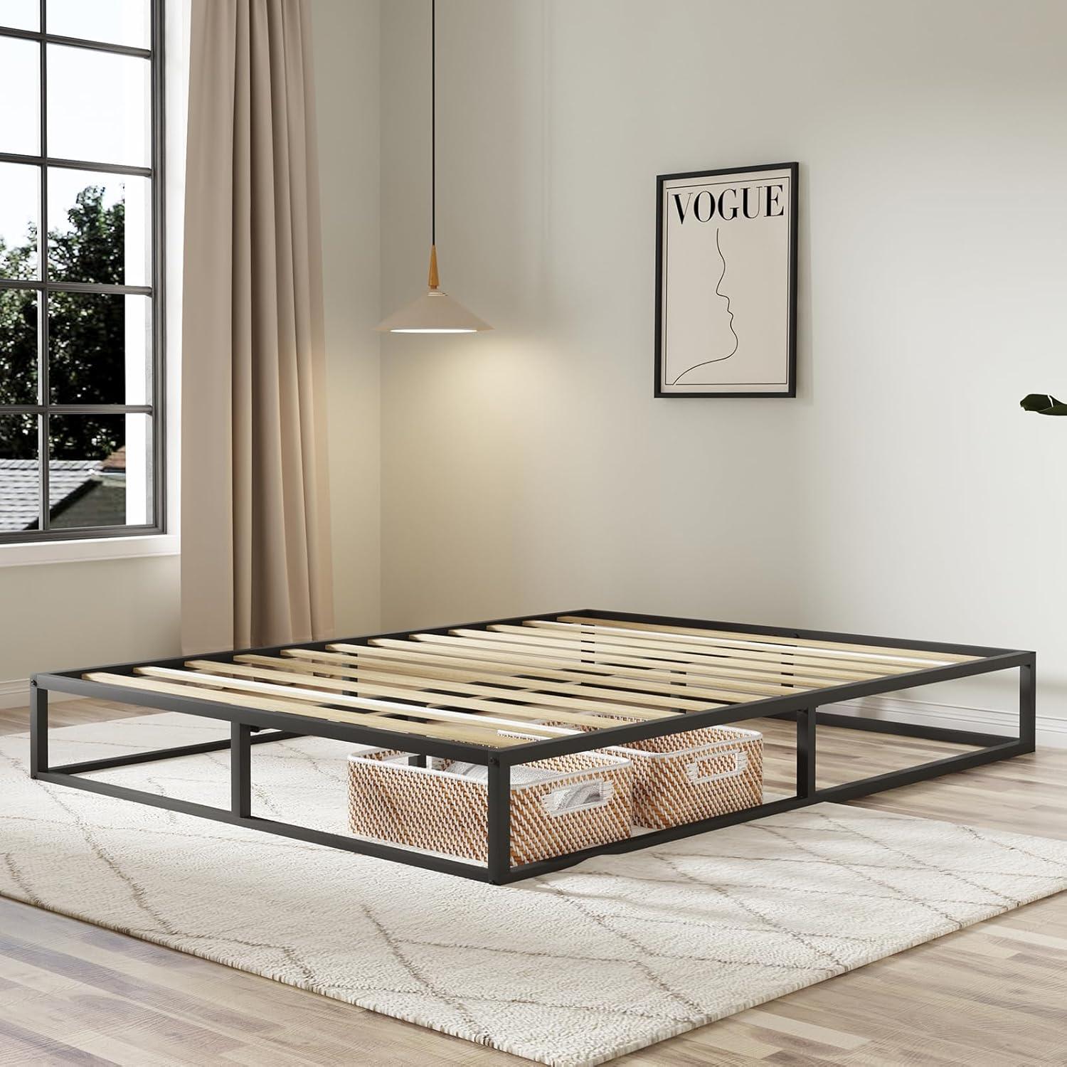 The Novilla metal bed frame is simple and stylish in design. Metal frame structure with wooden slats for support. To top it off, the metal legs in the middle add extra reinforcement, ensuring that the structure is stable and won't wobble or shake. We provide detailed installation instructions and all necessary components. Our instructions are easy to follow and can be quickly assembled by anyone. We have four sizes to fit your need, namely Twin/Full/Queen/King, and the color is classic and versatile black.