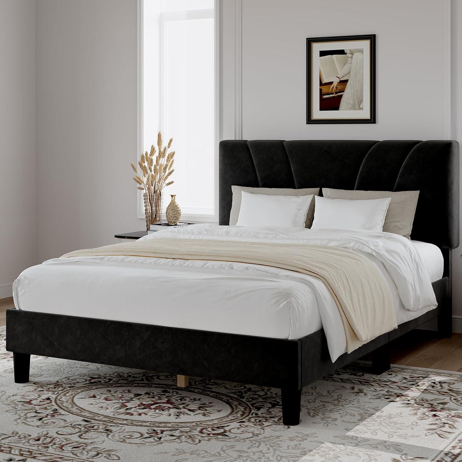Novilla Queen Bed Frame with Headboard, Linen Upholstered Bed Frame Queen Size with Wood Slats Support, No Box Spring Needed, Heavy Duty Feet, Easy Assembly, Beige(Black Velvet)