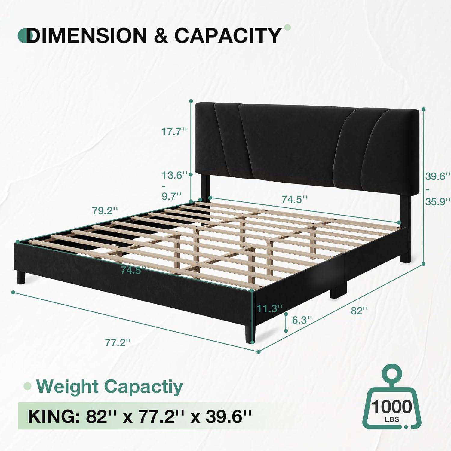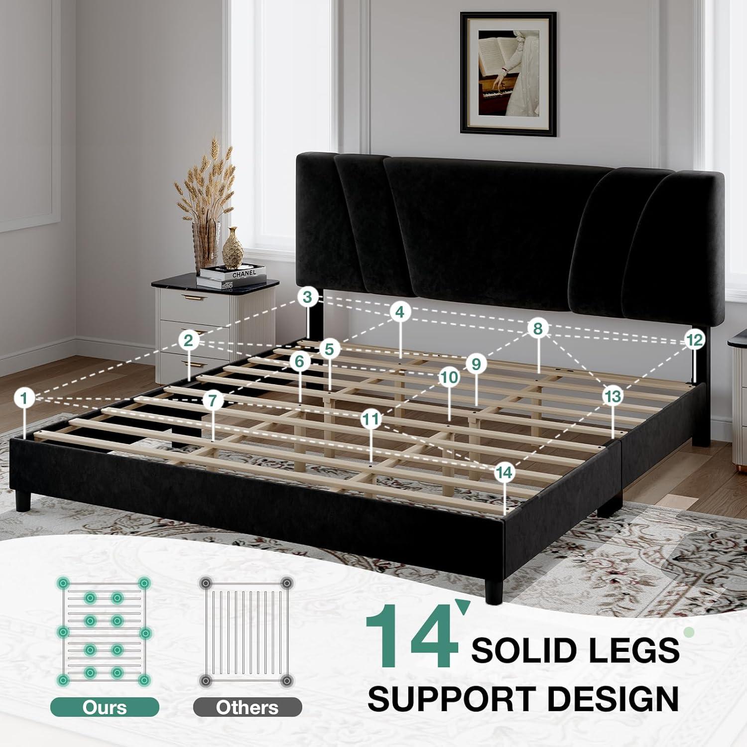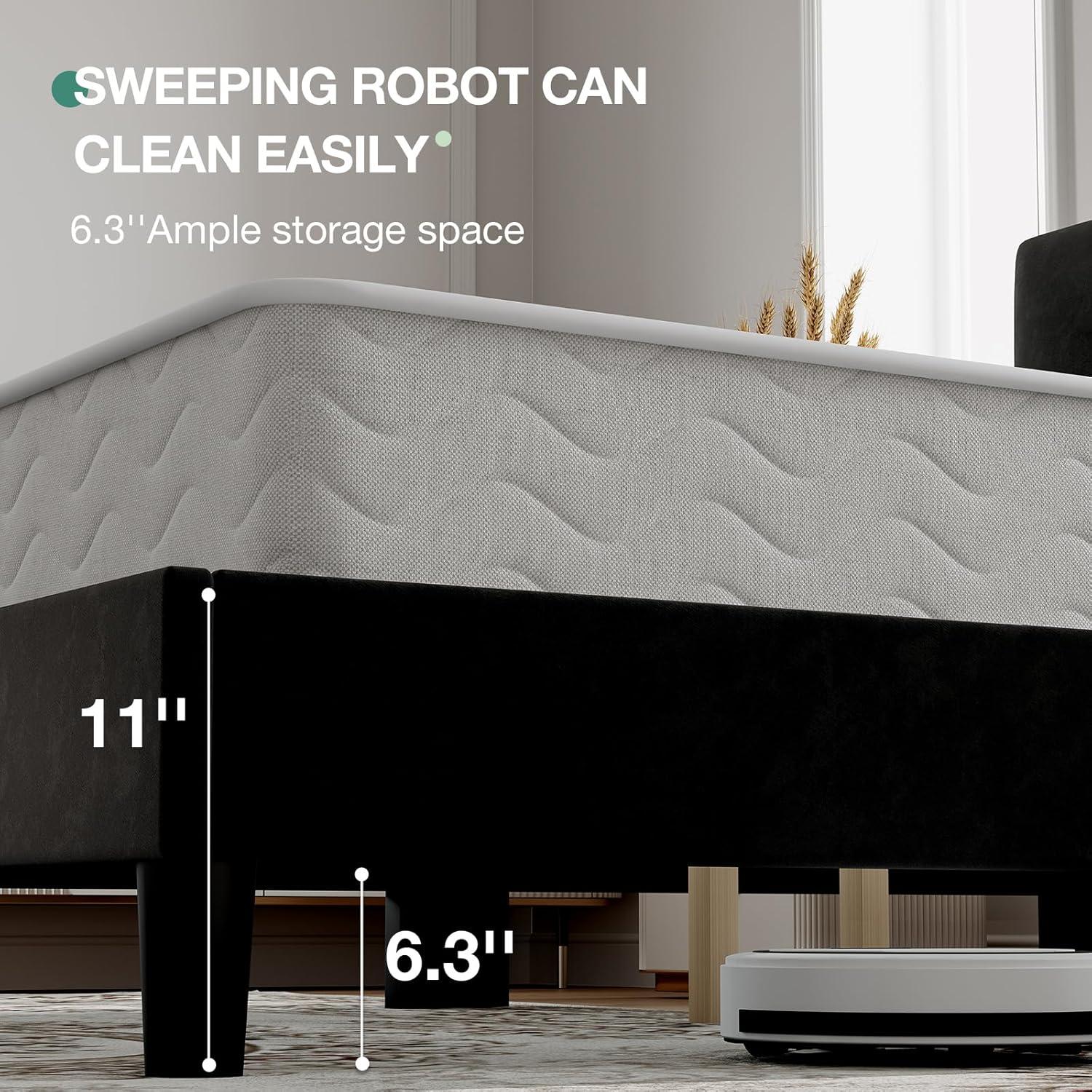 No Box Spring Needed: Our queen bed frame features a metal frame structure with high-density foam wrapped around the sides, 12 evenly spaced solid wood slats, and 9 iron support legs. This design provides dense and robust support for weights of up to 1200lbs, ensuring the durability and stability of the bed frame queen size.