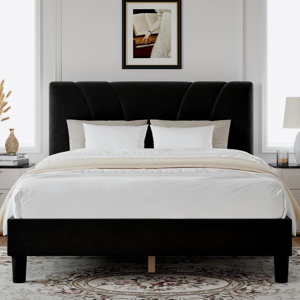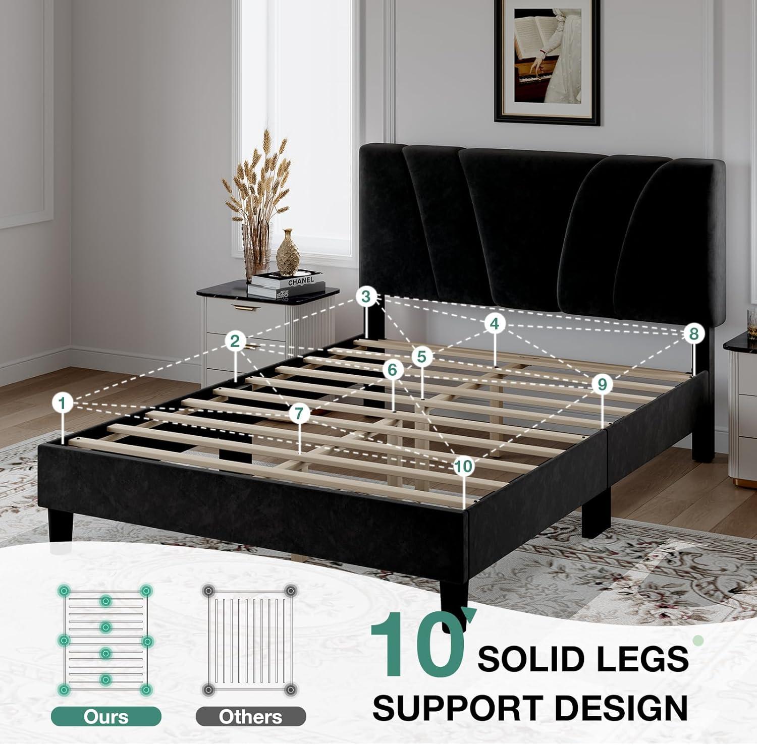 imageNovilla Queen Bed Frame with Headboard Linen Upholstered Bed Frame Queen Size with Wood Slats Support No Box Spring Needed Heavy Duty Feet Easy Assembly BeigeBlack Velvet