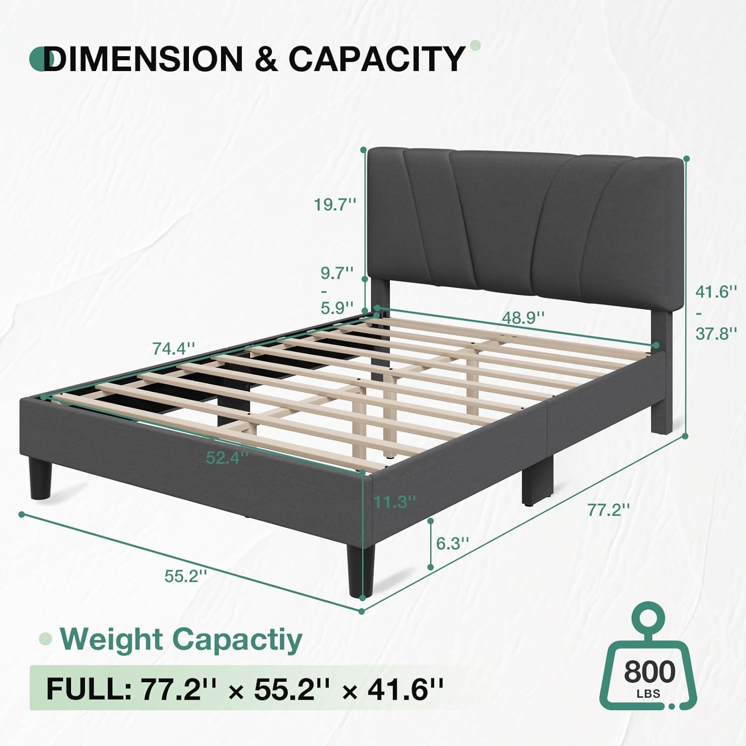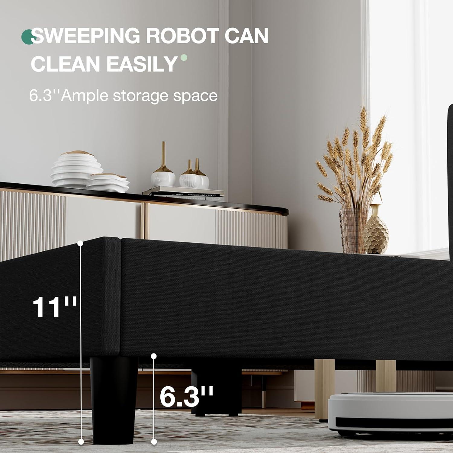 No Box Spring Needed: Our queen bed frame features a metal frame structure with high-density foam wrapped around the sides, 12 evenly spaced solid wood slats, and 9 iron support legs. This design provides dense and robust support for weights of up to 1200lbs, ensuring the durability and stability of the bed frame queen size.