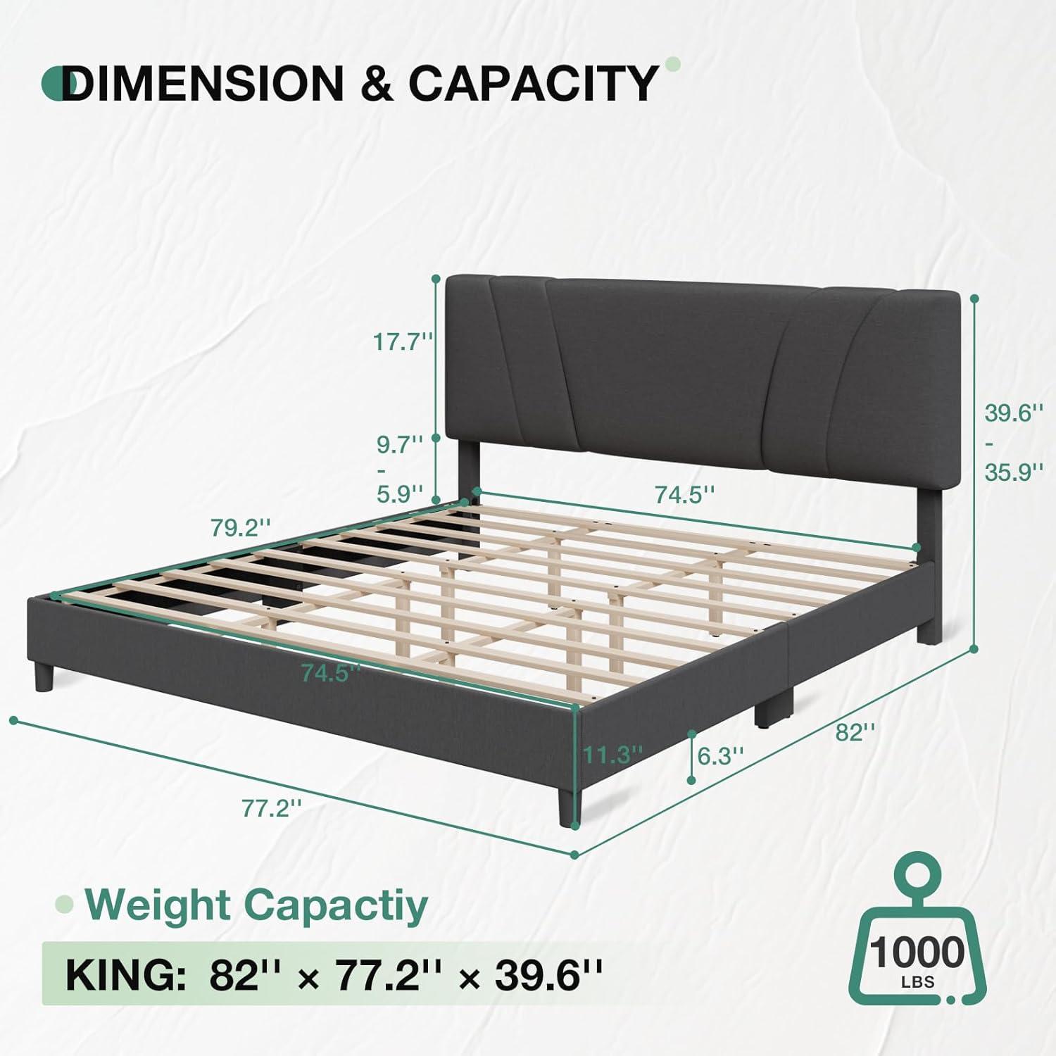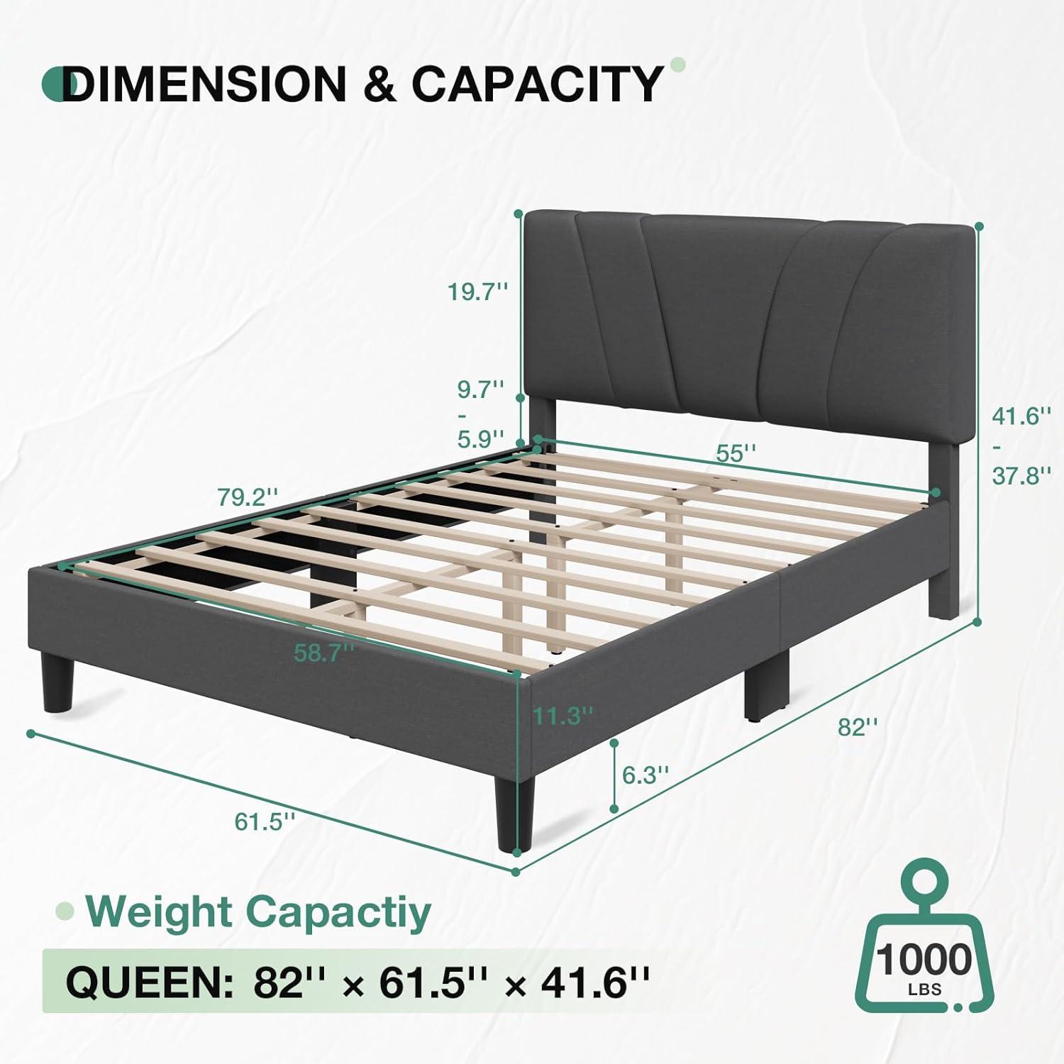 Stylish and Comfortable: The queen size bed frame with headboard crafted minimalist design seamlessly cfrom premium linen fabric, featuring foam padding for a comfortable touch. With clean, sleek lines, the omplements any bedroom decor, adding a touch of elegance and sophistication to your space.
