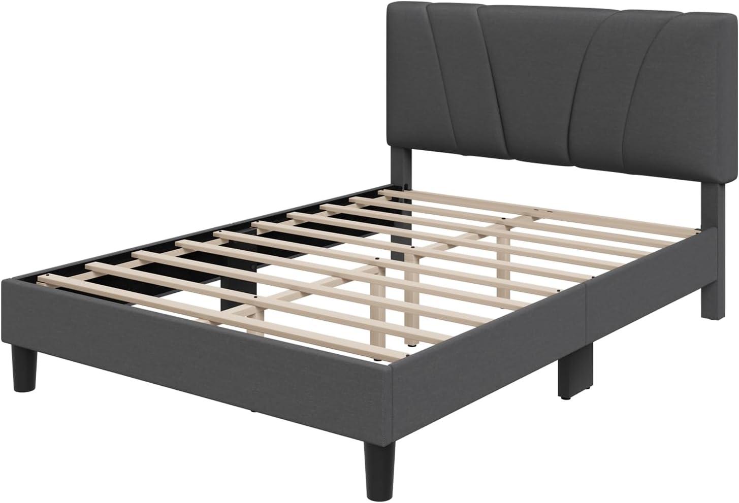 Novilla Queen Bed Frame with Headboard, Linen Upholstered Bed Frame Queen Size with Wood Slats Support, No Box Spring Needed, Heavy Duty Feet, Easy Assembly, Beige(Dark Grey)