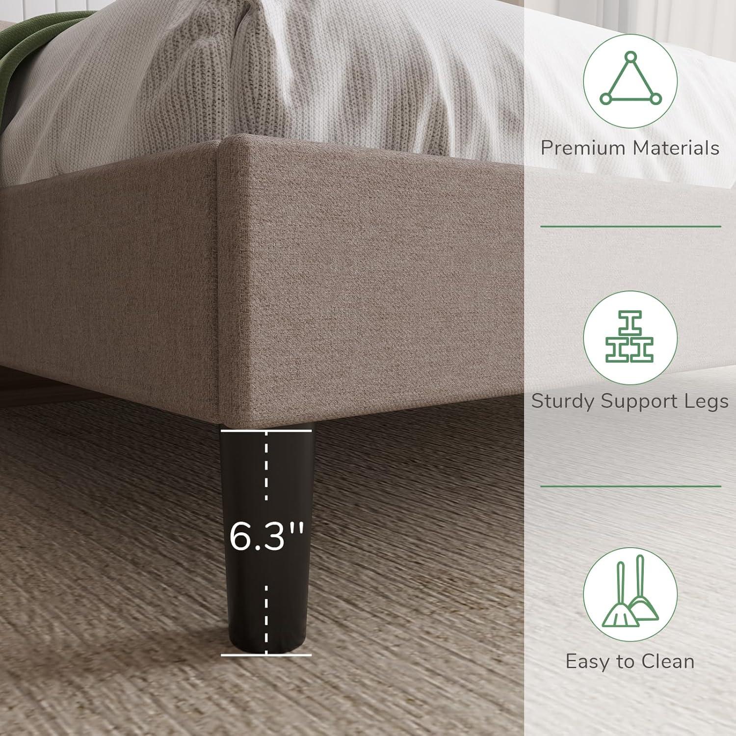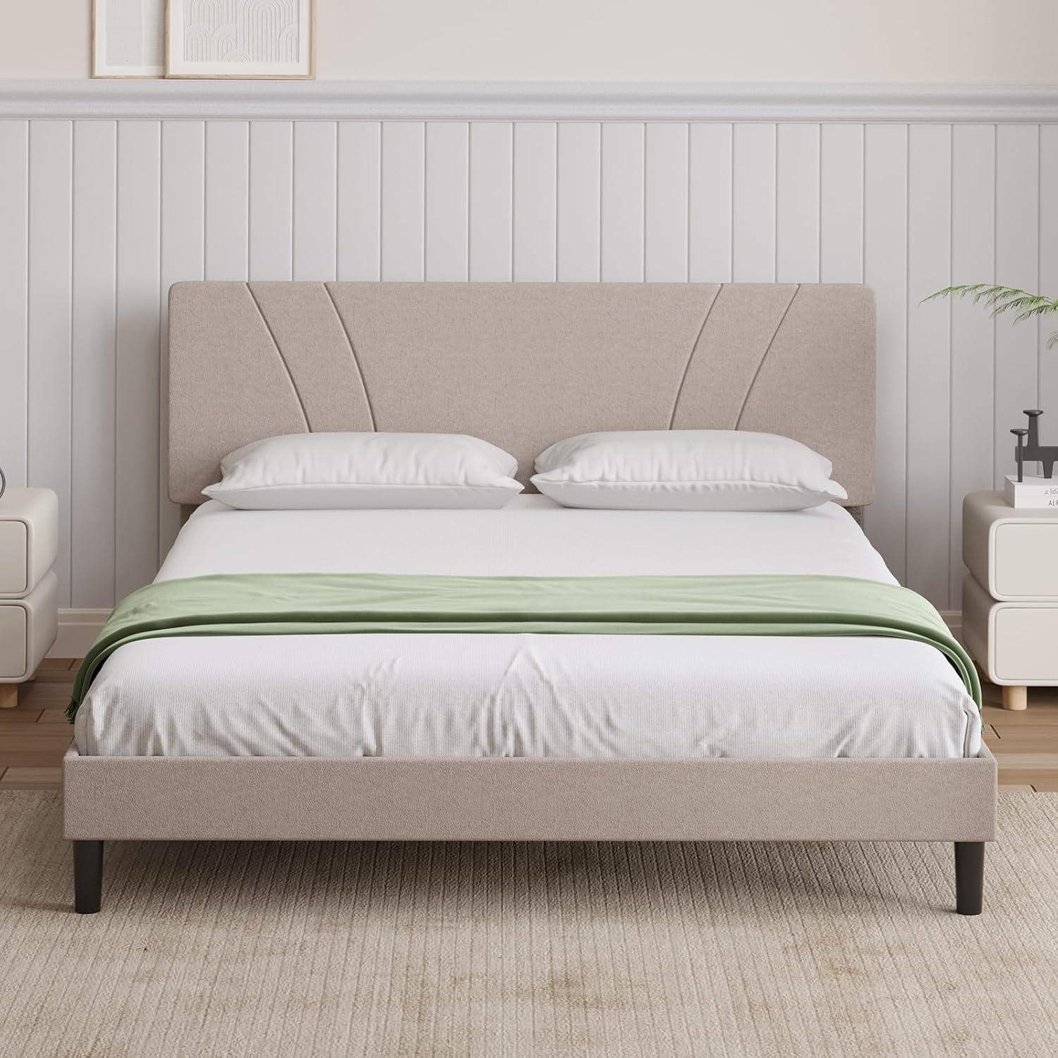 Stylish and Comfortable: The queen size bed frame with headboard crafted minimalist design seamlessly cfrom premium linen fabric, featuring foam padding for a comfortable touch. With clean, sleek lines, the omplements any bedroom decor, adding a touch of elegance and sophistication to your space.