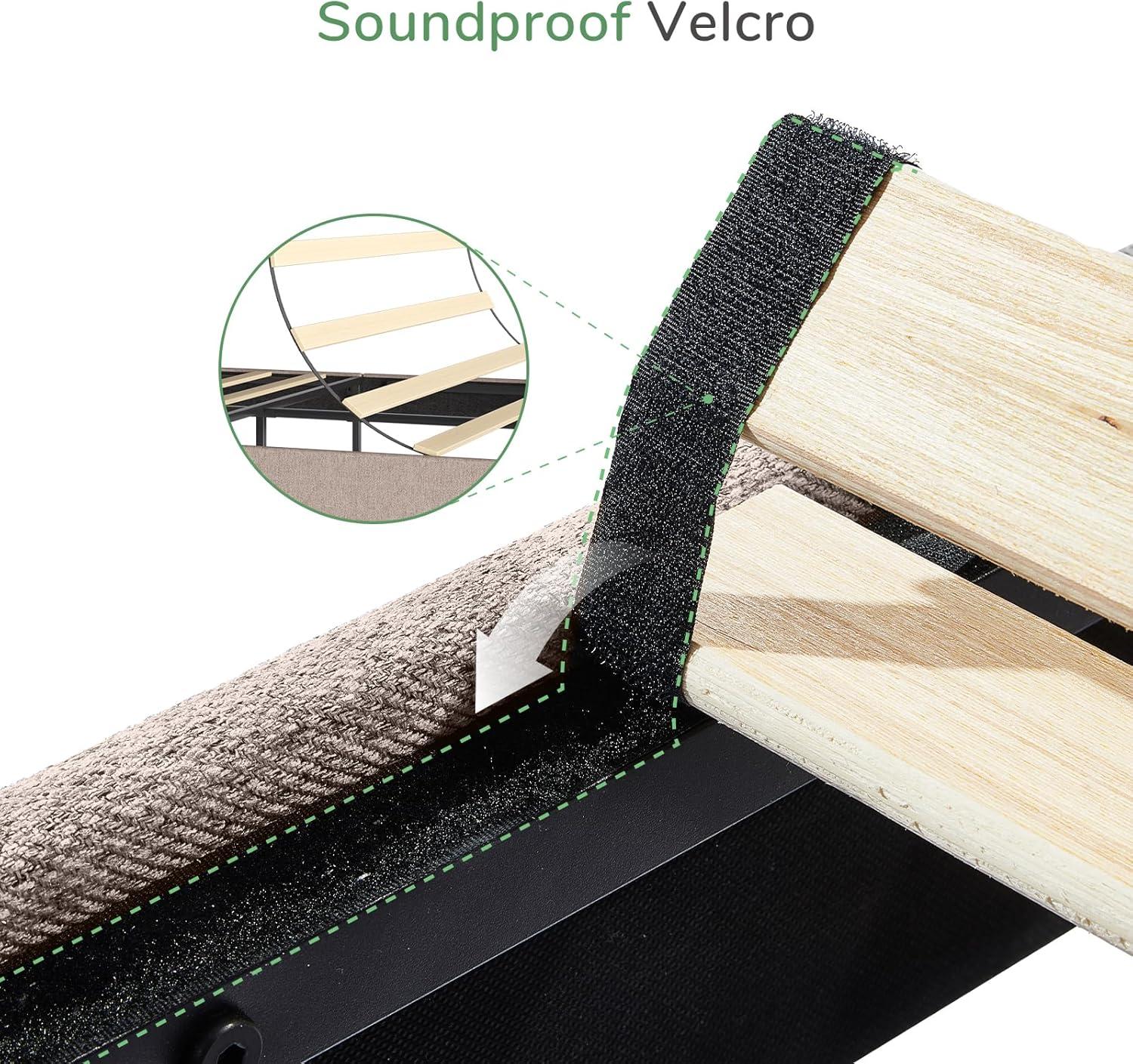 No Box Spring Needed: Our queen bed frame features a metal frame structure with high-density foam wrapped around the sides, 12 evenly spaced solid wood slats, and 9 iron support legs. This design provides dense and robust support for weights of up to 1200lbs, ensuring the durability and stability of the bed frame queen size.