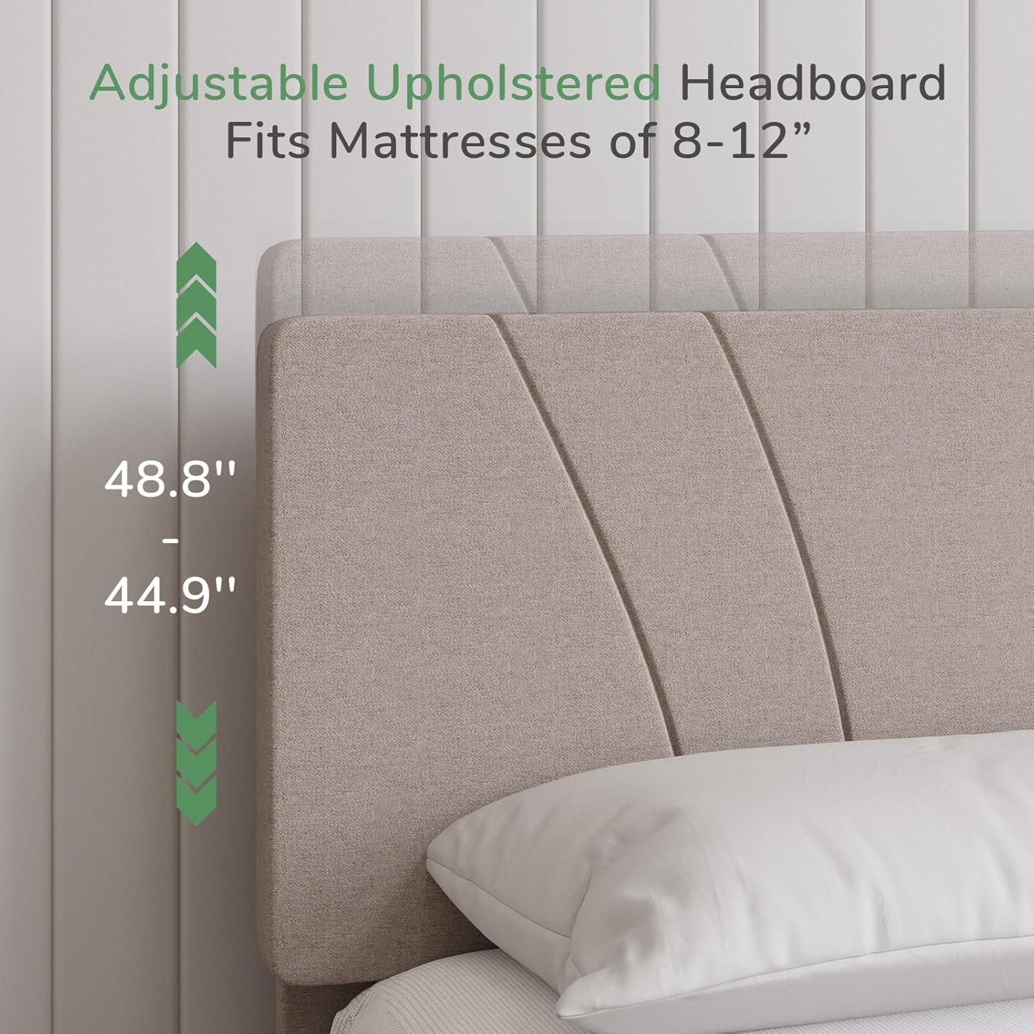 Novilla Queen Bed Frame with Headboard, Linen Upholstered Bed Frame Queen Size with Wood Slats Support, No Box Spring Needed, Heavy Duty Feet, Easy Assembly, Beige(Light Beige)