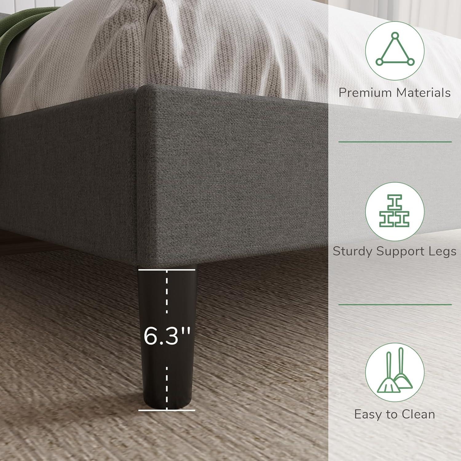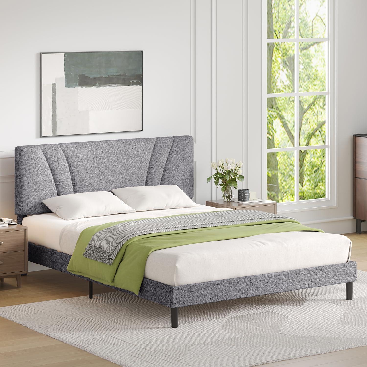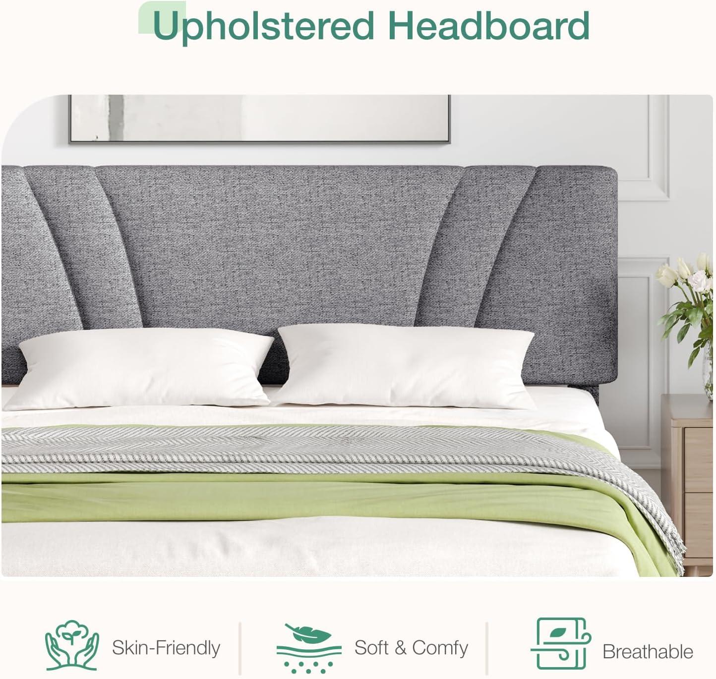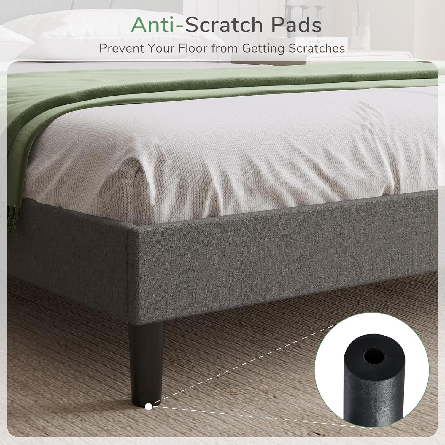 Stylish and Comfortable: The queen size bed frame with headboard crafted minimalist design seamlessly cfrom premium linen fabric, featuring foam padding for a comfortable touch. With clean, sleek lines, the omplements any bedroom decor, adding a touch of elegance and sophistication to your space.