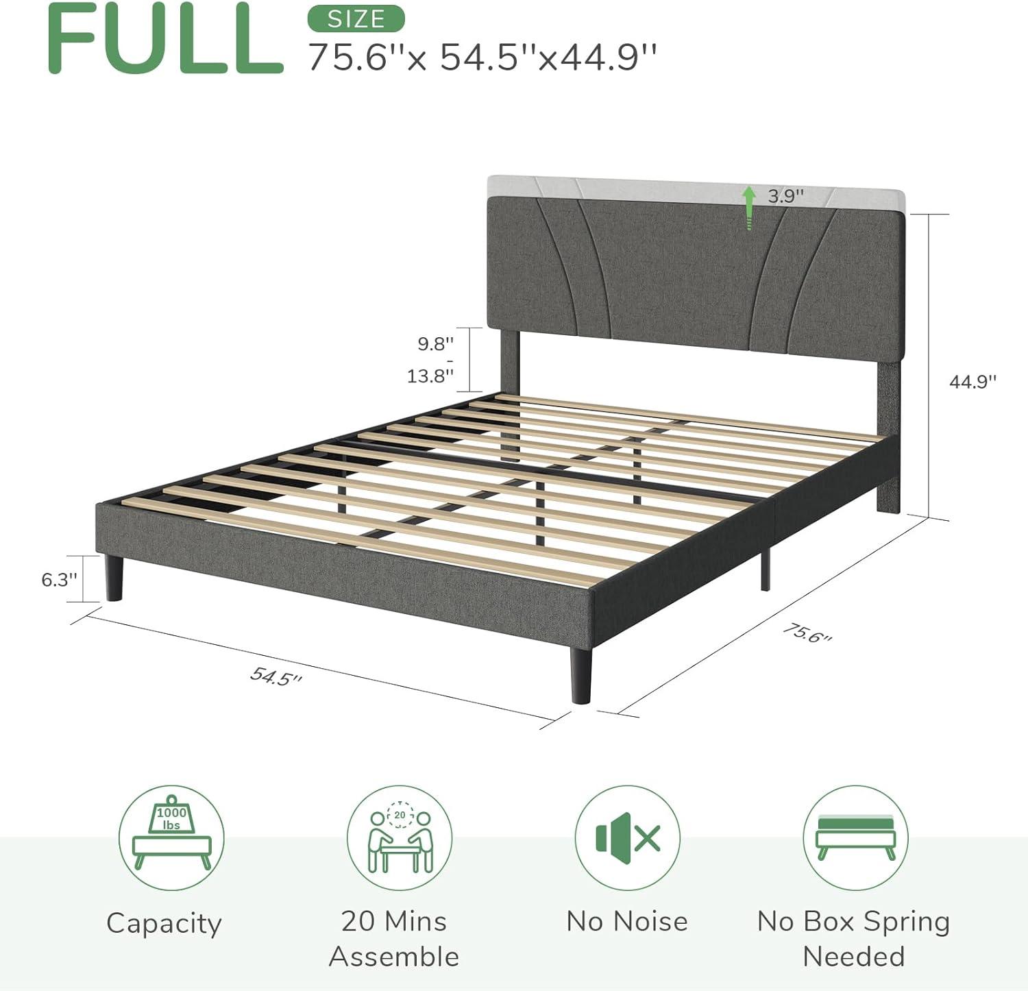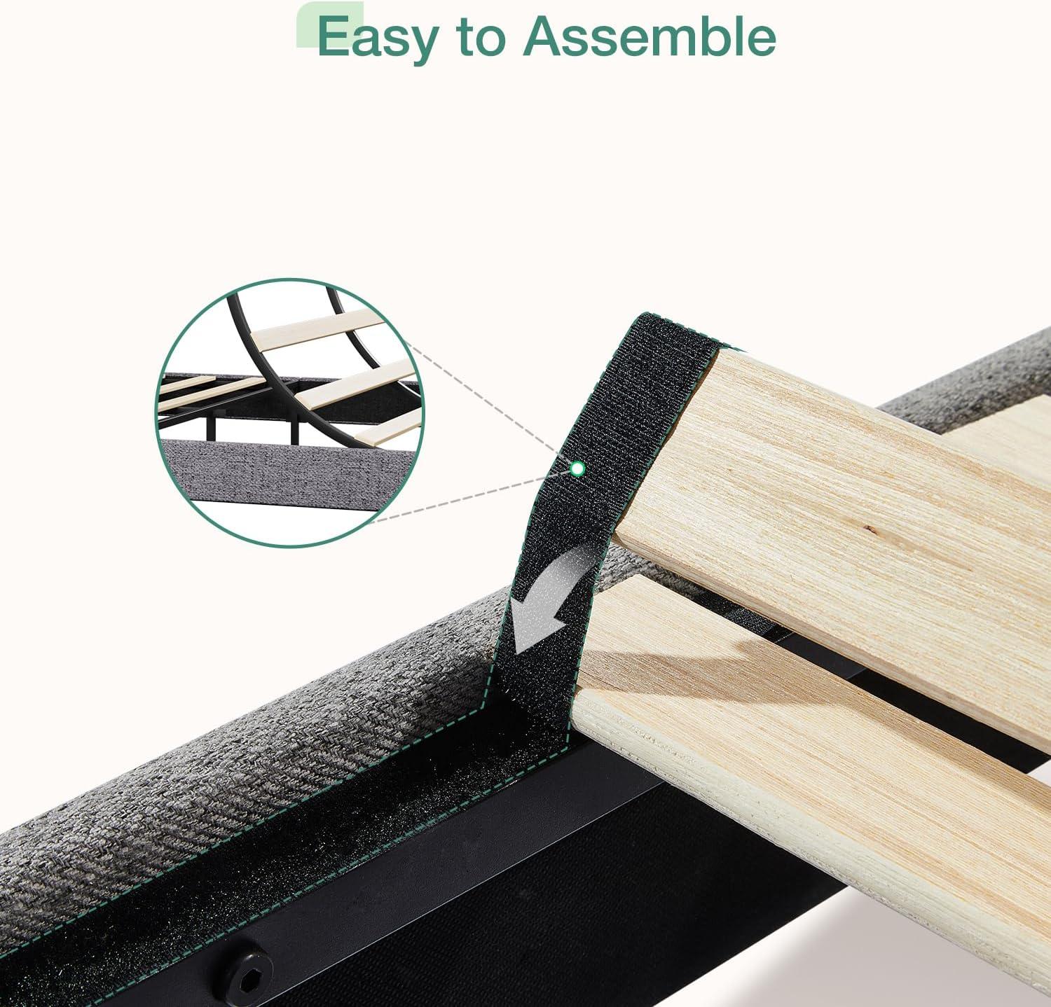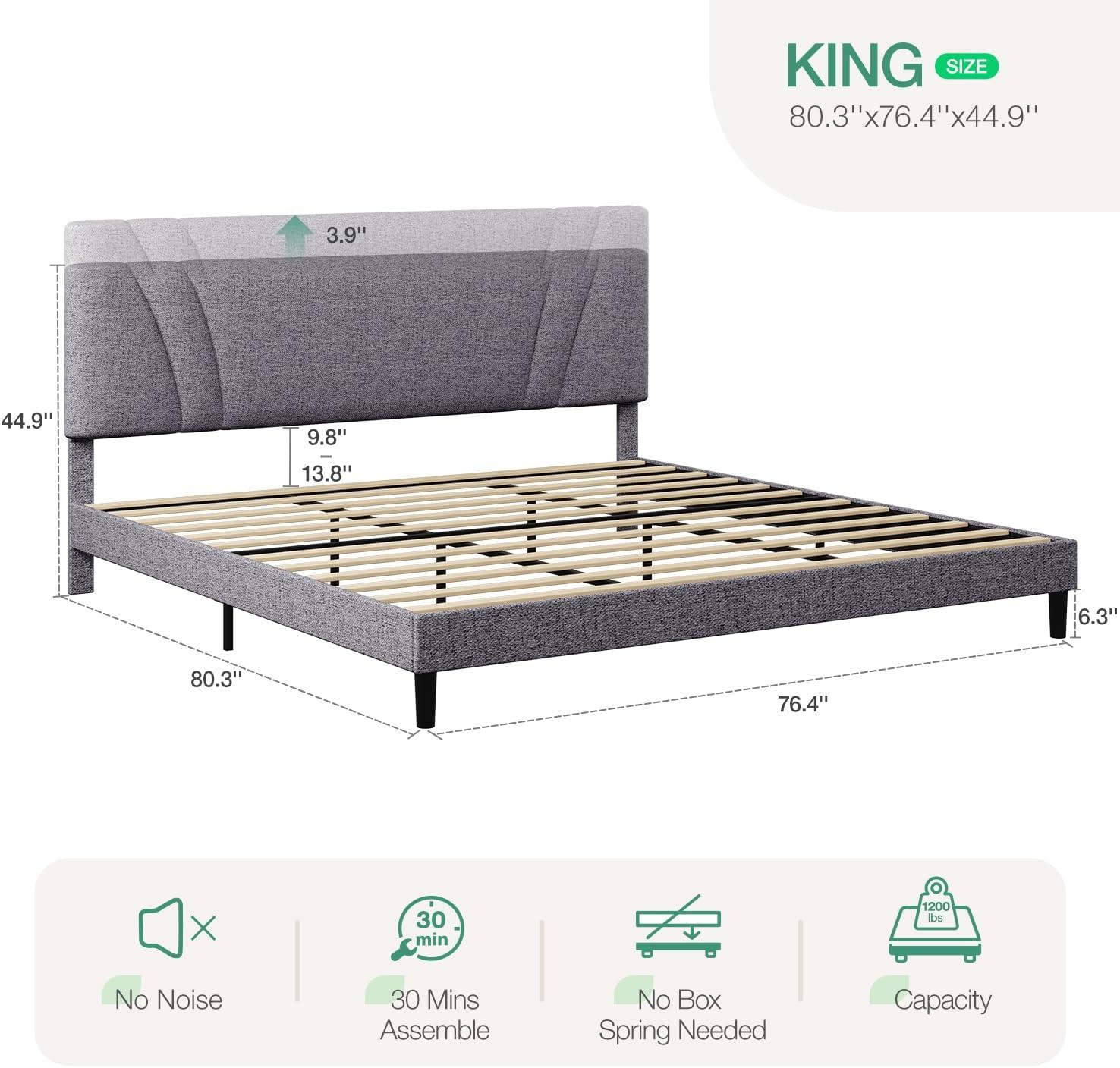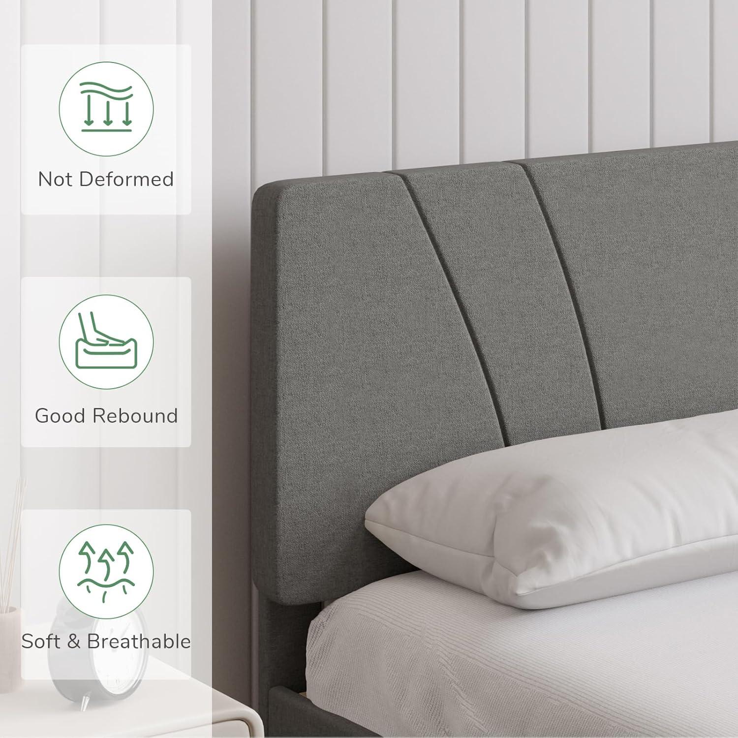 Stylish and Comfortable: The queen size bed frame with headboard crafted minimalist design seamlessly cfrom premium linen fabric, featuring foam padding for a comfortable touch. With clean, sleek lines, the omplements any bedroom decor, adding a touch of elegance and sophistication to your space.