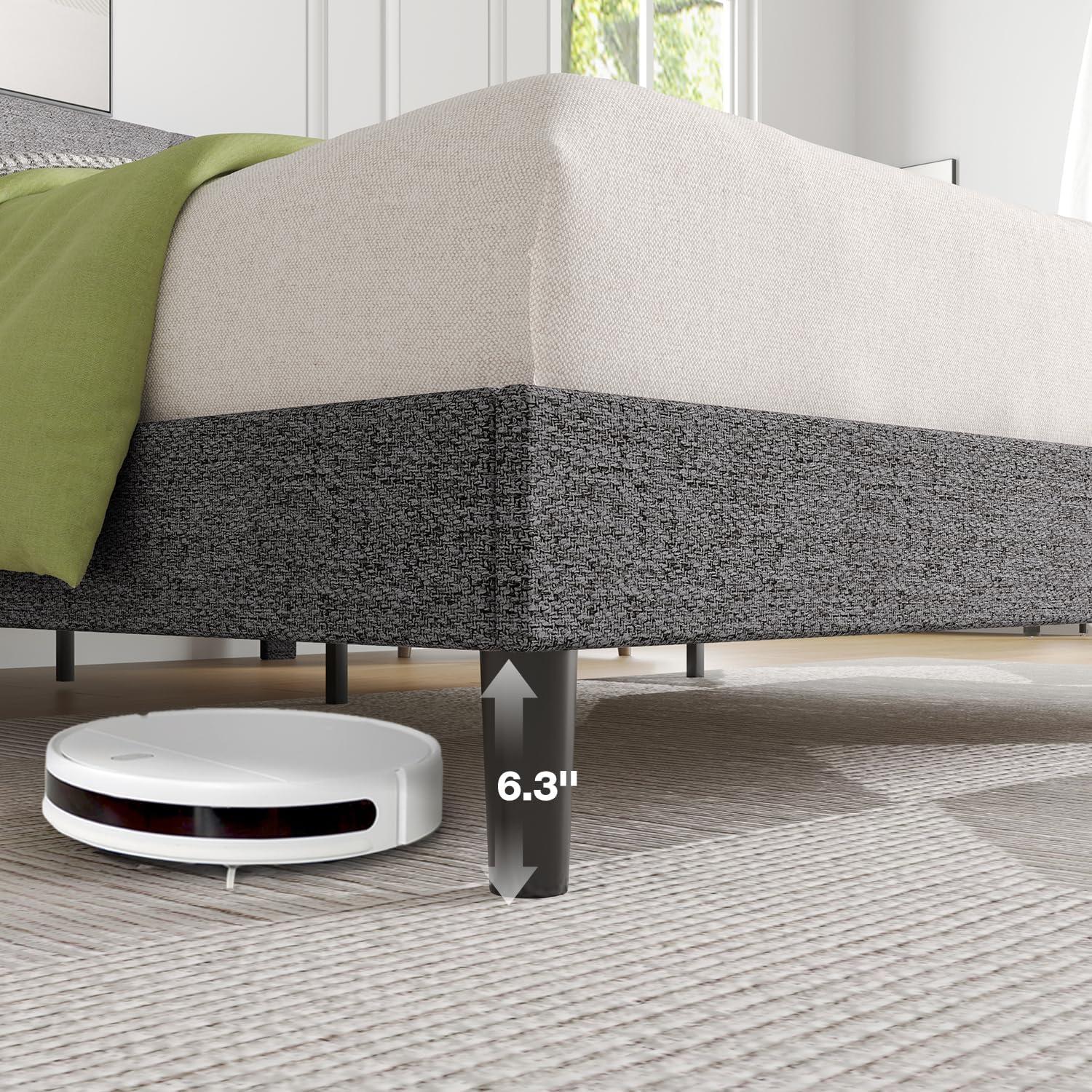 No Box Spring Needed: Our queen bed frame features a metal frame structure with high-density foam wrapped around the sides, 12 evenly spaced solid wood slats, and 9 iron support legs. This design provides dense and robust support for weights of up to 1200lbs, ensuring the durability and stability of the bed frame queen size.