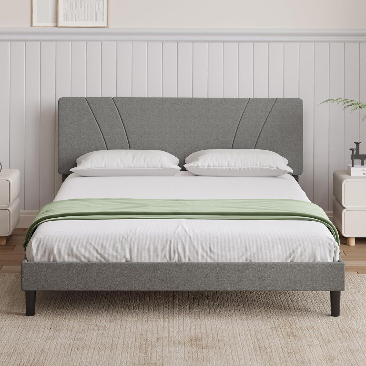 Novilla Queen Bed Frame with Headboard, Linen Upholstered Bed Frame Queen Size with Wood Slats Support, No Box Spring Needed, Heavy Duty Feet, Easy Assembly, Beige(Light Grey)