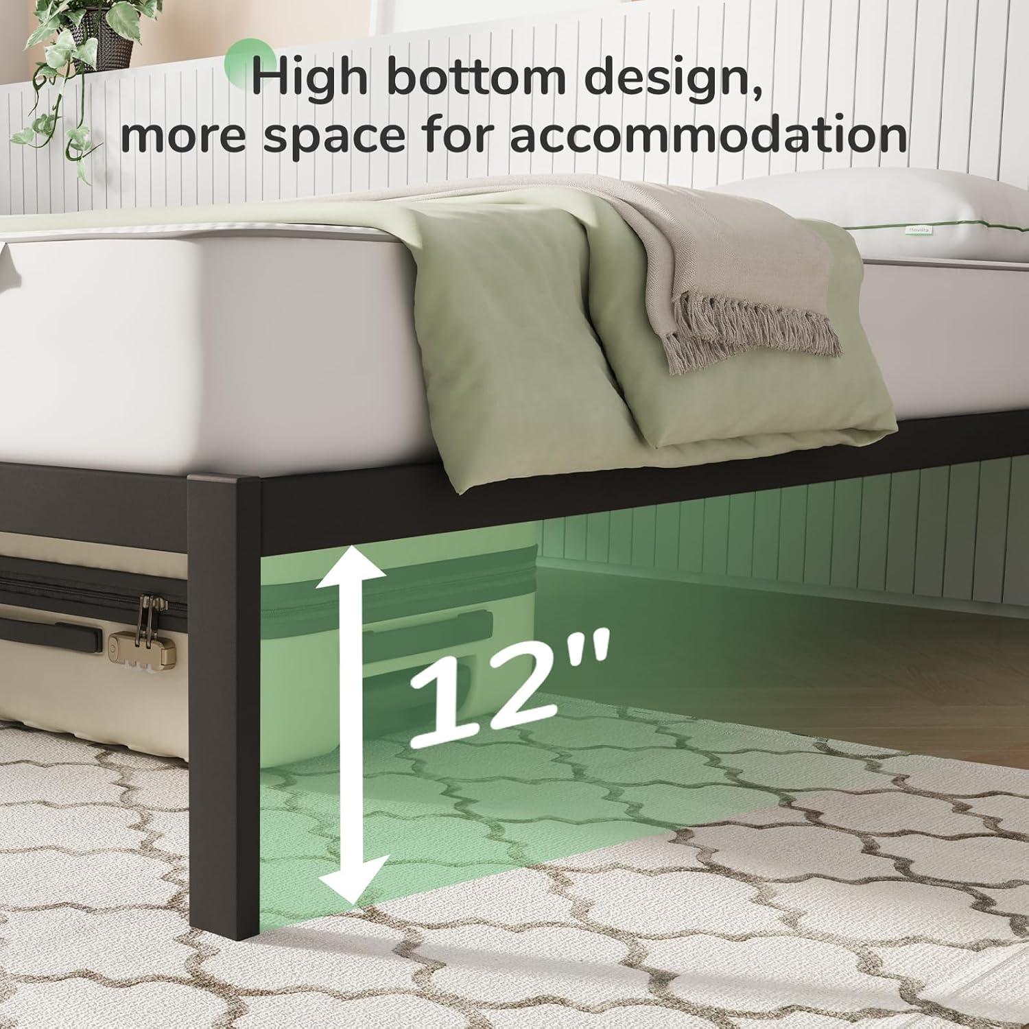 Generous Storage Space: This white platform bed frame provides 12 inches of space under the bed, giving you plenty of room to store your items and keep your bedroom organized. This elevated design makes it easy for robot vacuums to clean underneath, helping you keep the room tidy.
