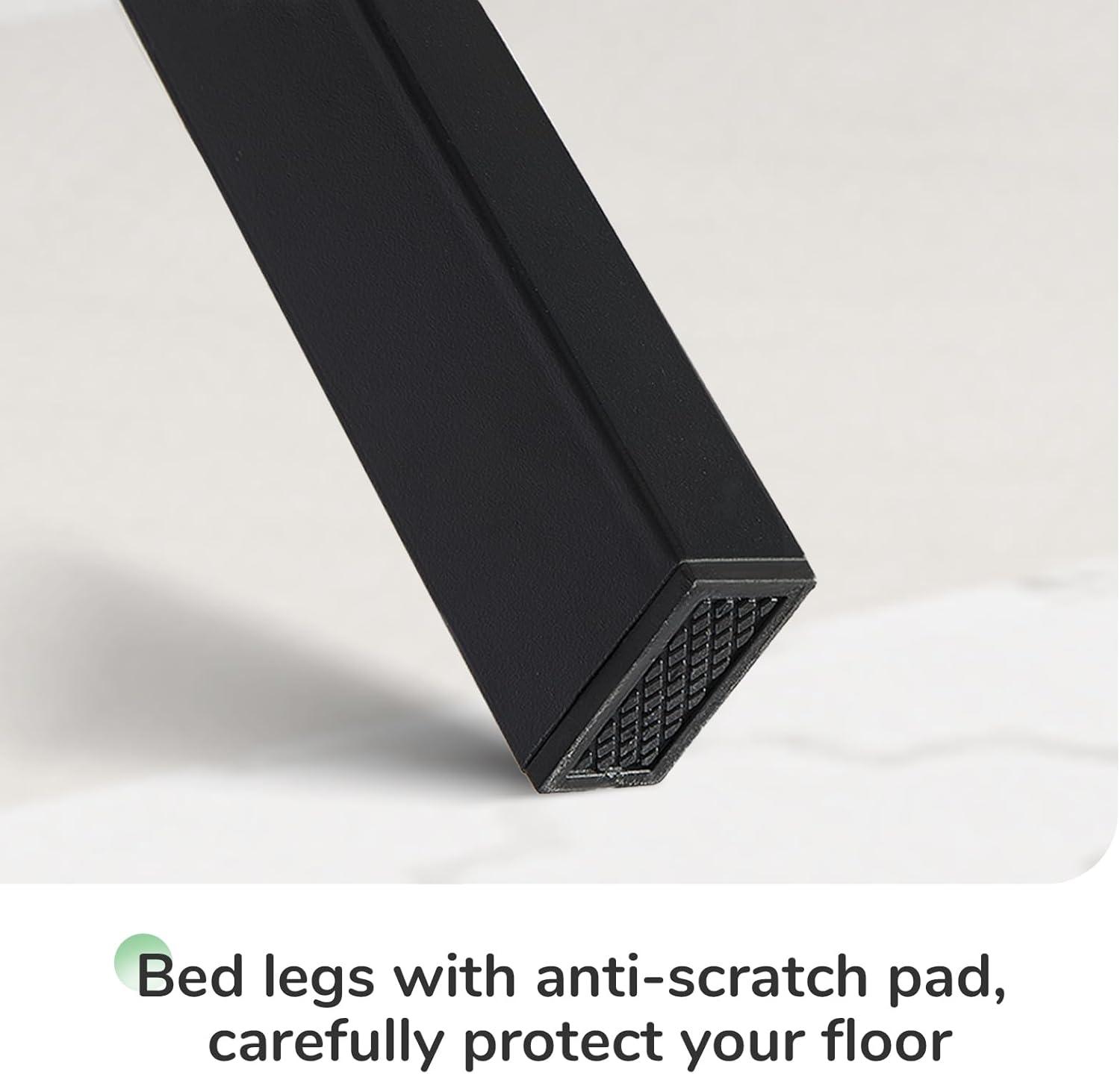 Durable & Sturdy: In order to enhance support and stability, this bed frame includes an extra central leg. The reinforced steel construction ensures a robust structure that can support up to 1200 lbs, providing a secure and steady foundation for your mattress. This design not only extends the lifespan of your bed frame but also provides a safe and comfortable sleeping experience.