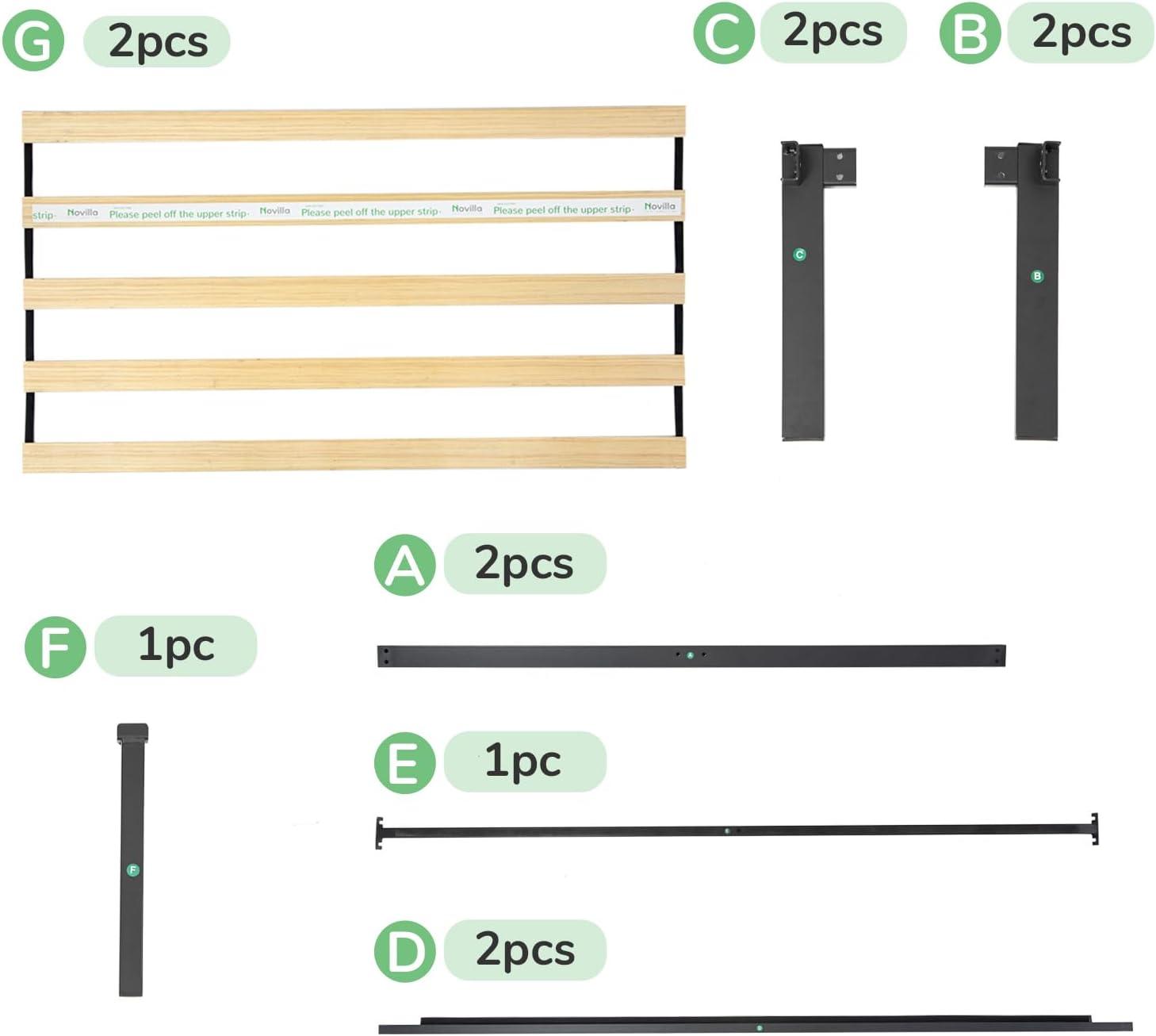 Noise Reduction & Scratch Resistant: The bed slats include 2 noise-reducing strips and 2 anti-slip patches to ensure a quiet and stable sleep environment, which made with wood certified by the Forest Stewardship Council (FSC). Additionally, the novilla bed frame legs have protective pads to prevent floor scratches.