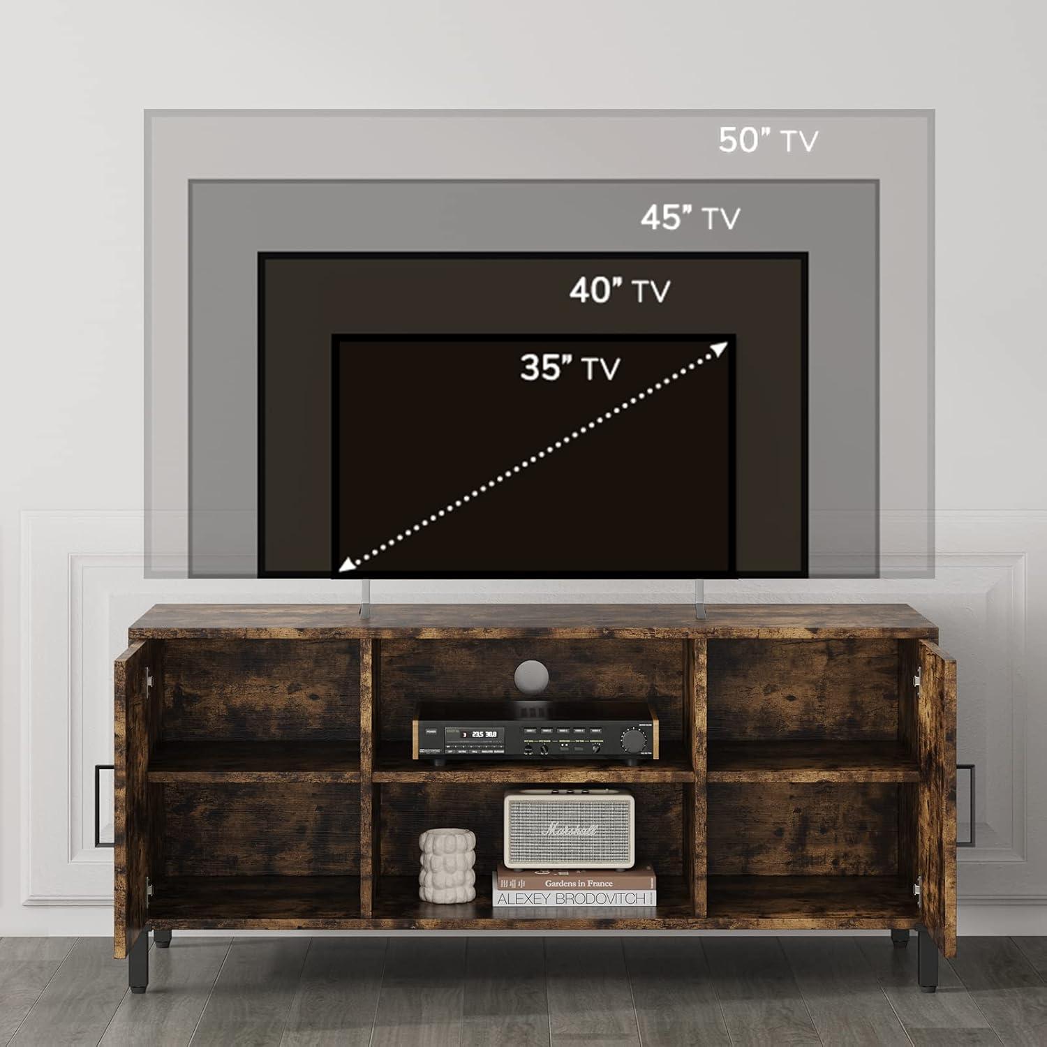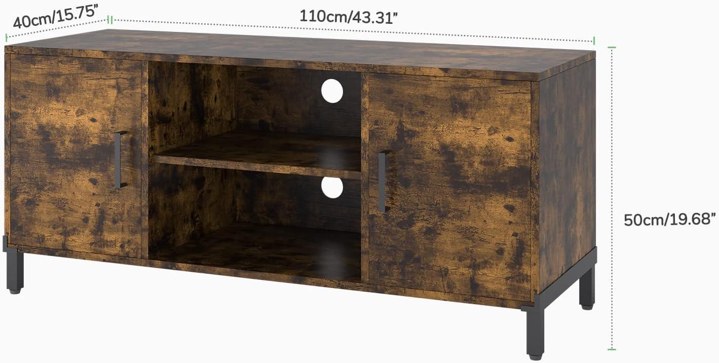 DIMENSIONS: Overall dimension: 19.68” H × 15.75” W × 43.31” L. This entertainment center supports TVs up to 50”.