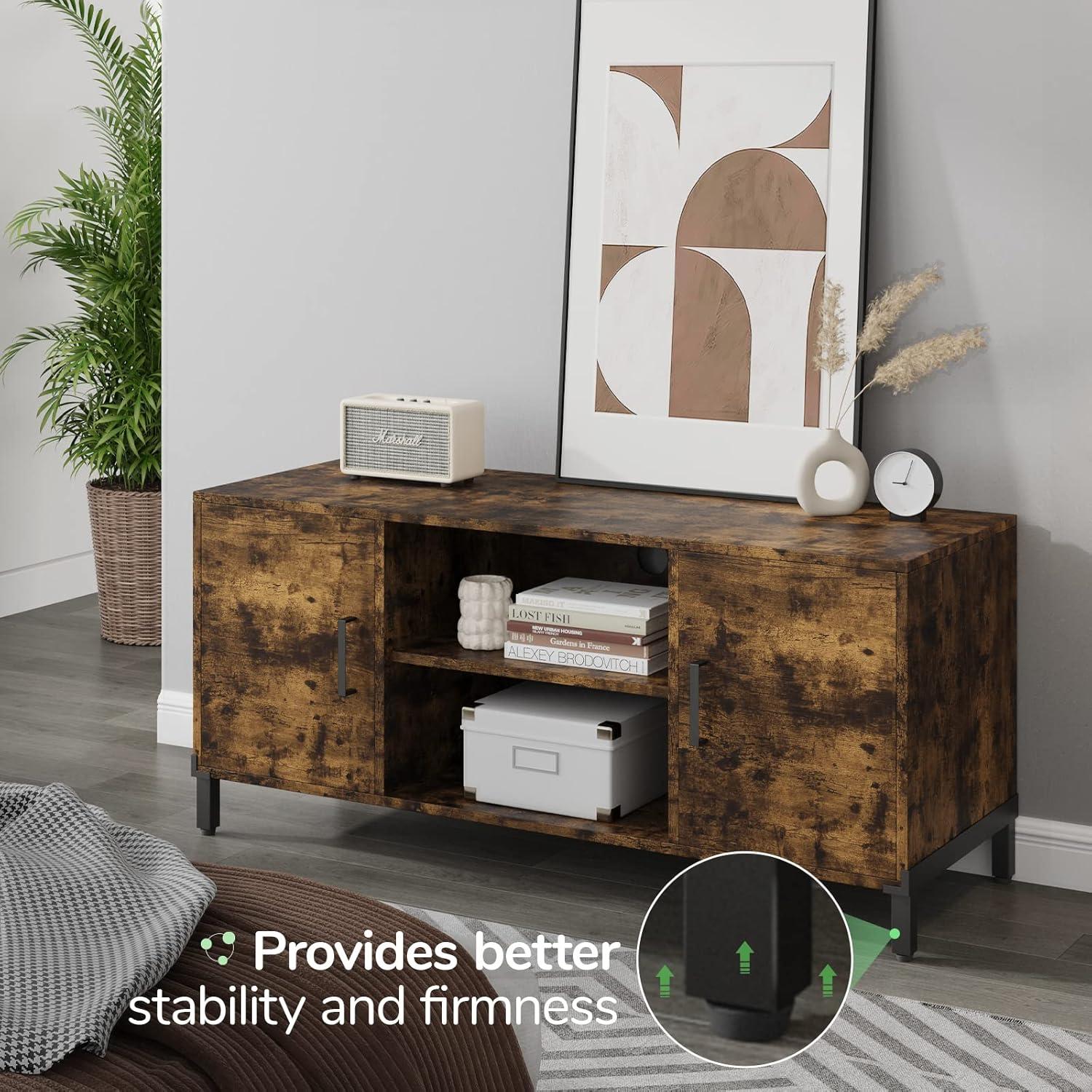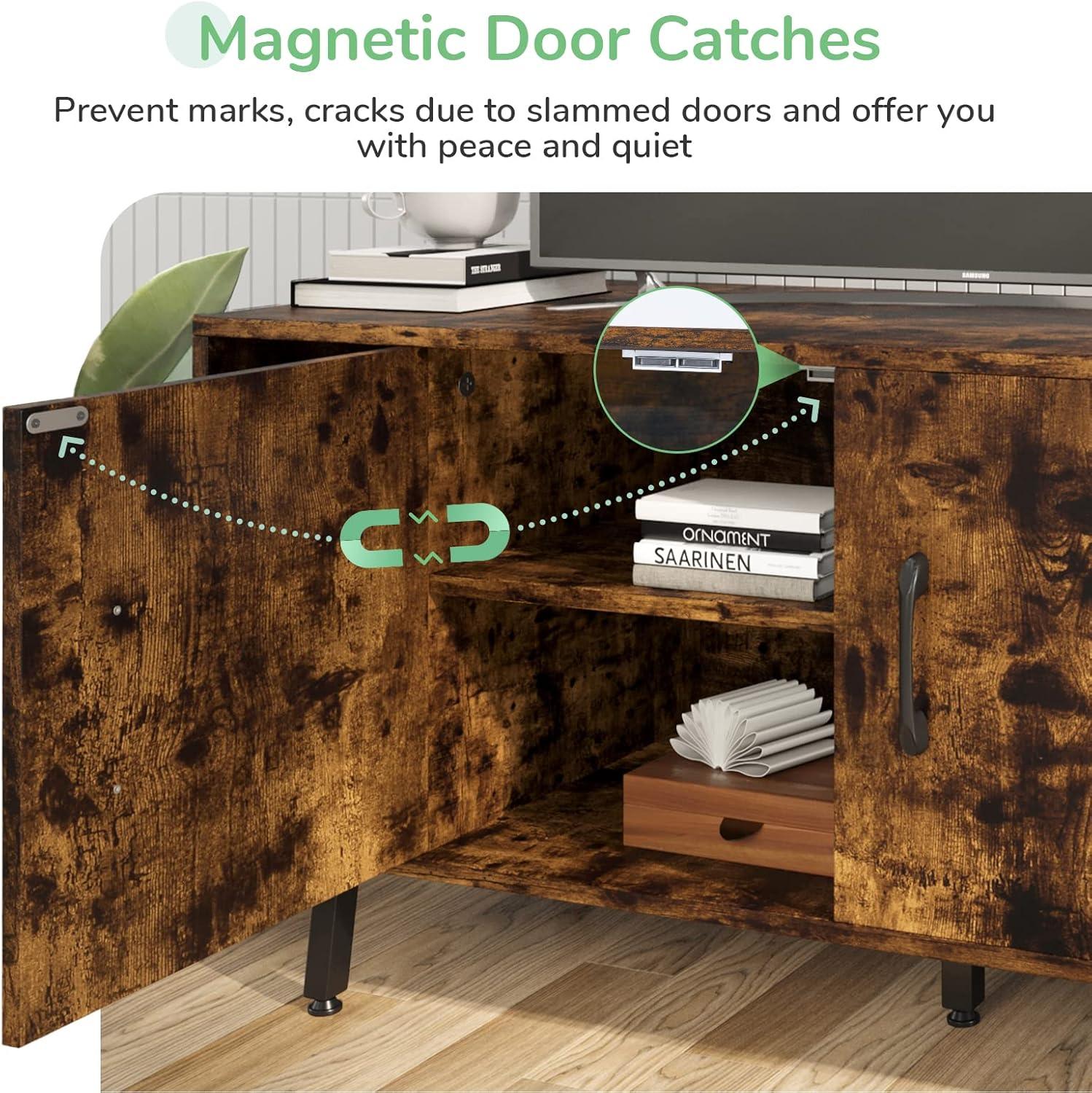 DURABLE MATERIAL: Top surface supports up to 132 lbs. Made of high-grade chipboard and edges sealed with PVC, the small TV stand is waterproof and highly resistant to wear, scratch, and corrosion.